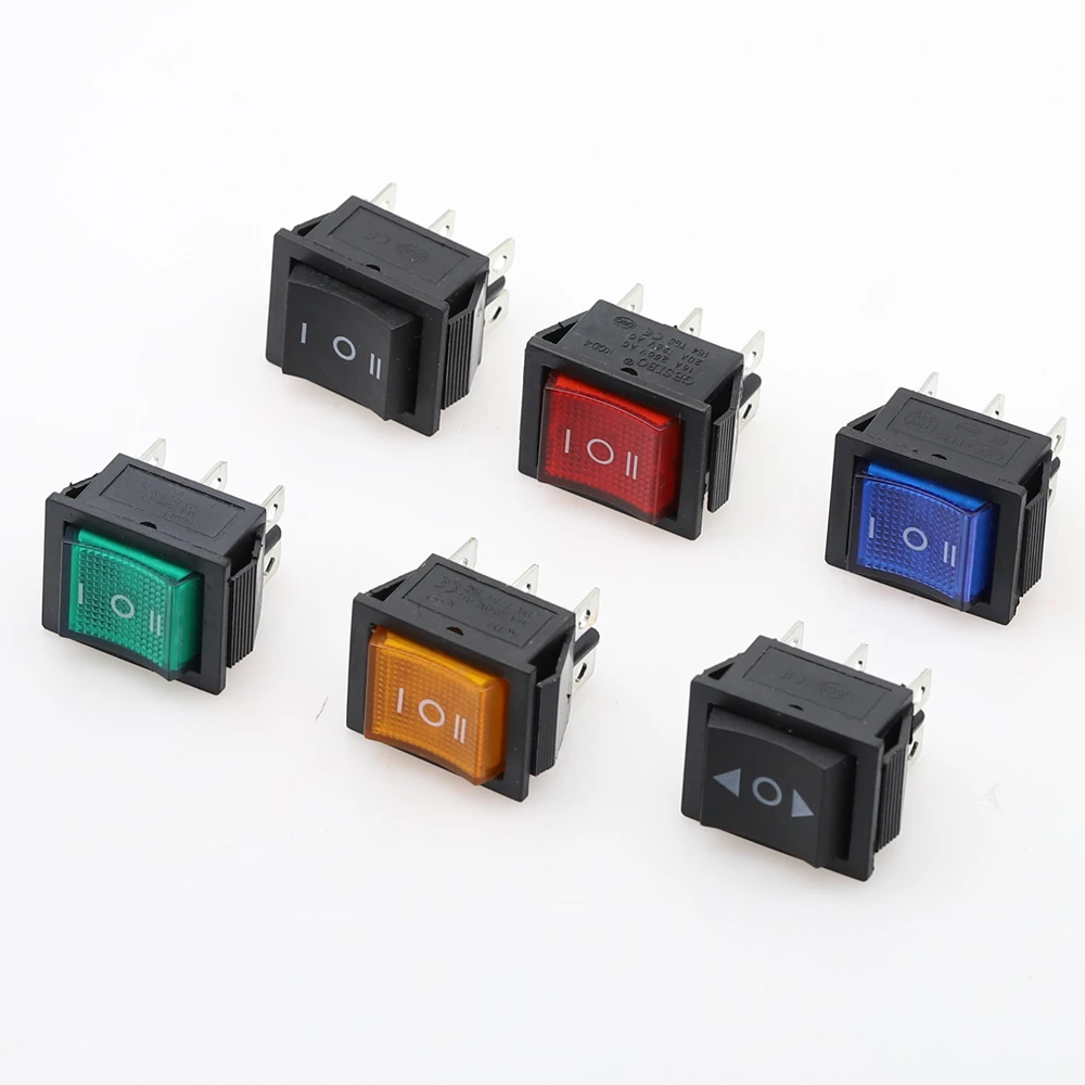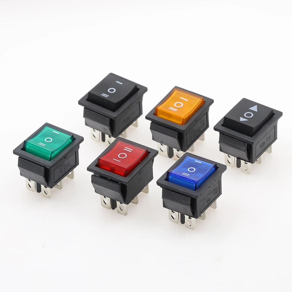 Переключатель питания KCD4 с самоблокировкойсамосбросом, 220 В, 3 положения, 6 контактов, с подсветкой, 16 А, В20 А, В переменного тока, 1 шт.