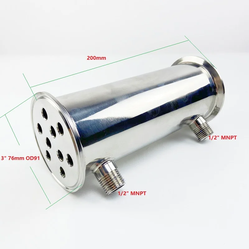 Бесплатная доставка 3 "(76 мм) OD91mm, санитарный дефлегматотор, 12" MNPT, SS304,9 труб внутри ID 9 мм, длина 200 мм