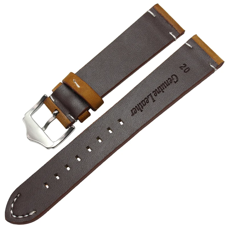Ремешок итальянский из натуральной кожи для мужских и женских наручных часов, винтажный темно-коричневый черный браслет с классической пряжкой, 18 мм 20 мм 22 мм
