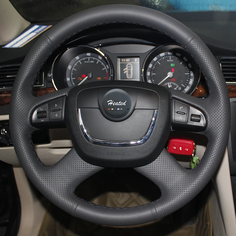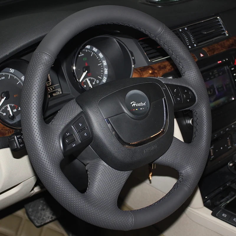 Кожаный чехол рулевого колеса автомобиля из микрофибры для Skoda Octavia a5 a 5 Superb 2012 2013, оплетка на рулевое колесо, чехол