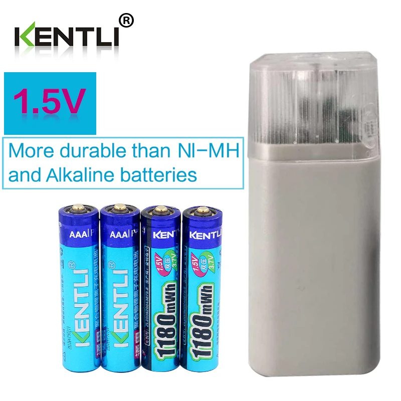 Аккумуляторная литий-ионная батарея KENTLI 1,5 в aaa, 4 слота