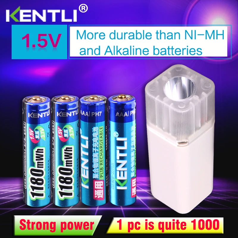 KENTLI 4 шт. 1,5 в 1180mWh AAA перезаряжаемая полимерная литиевая батарея + 4 слота aa литиевая батарея aaa зарядное устройство с фонариком