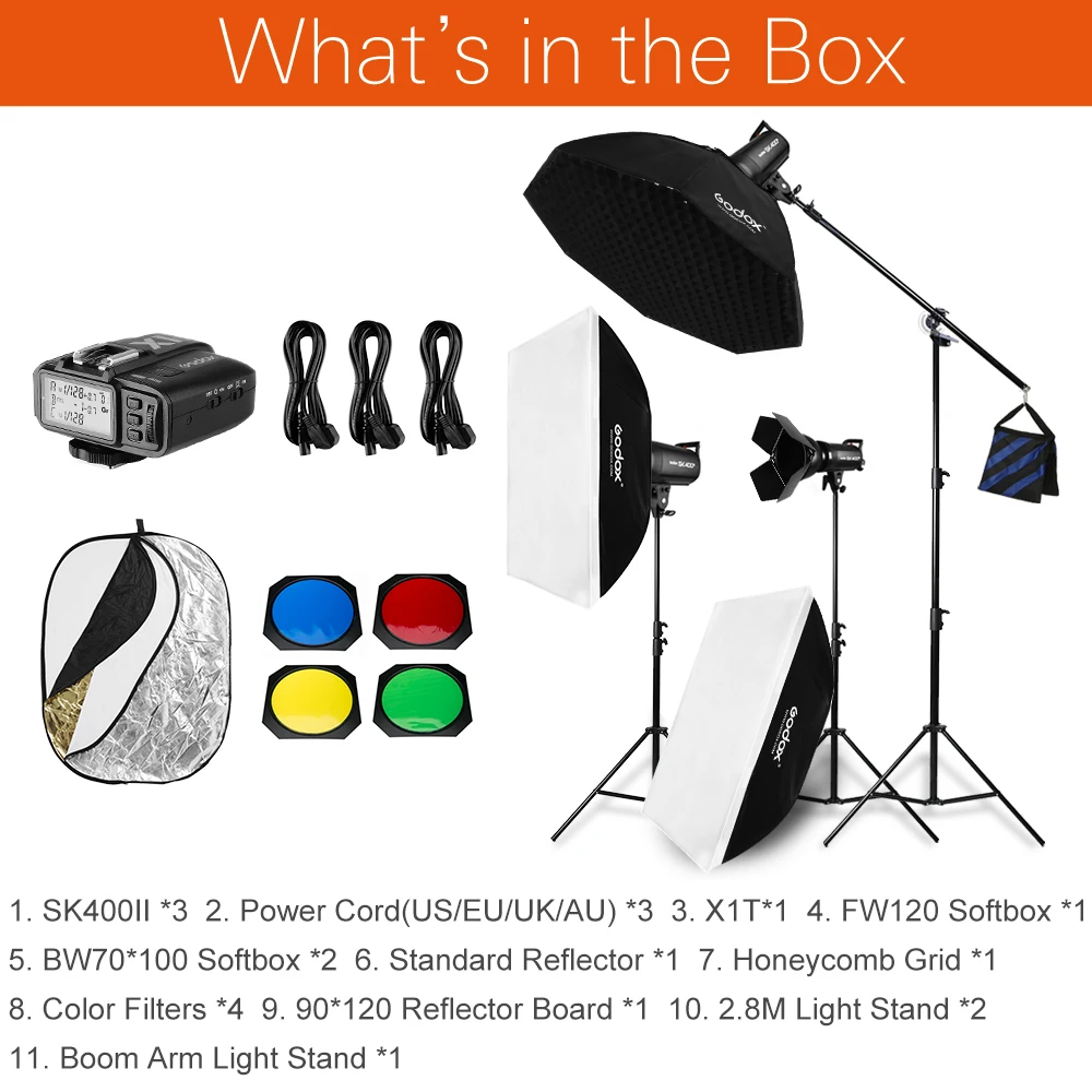 Вспышка Godox 3x SK400II 400Ws 1200 Вт для фотостудии, софтбокс, оссветильник ительная стойка, штанга для фотостудии Arm Top Light Stand