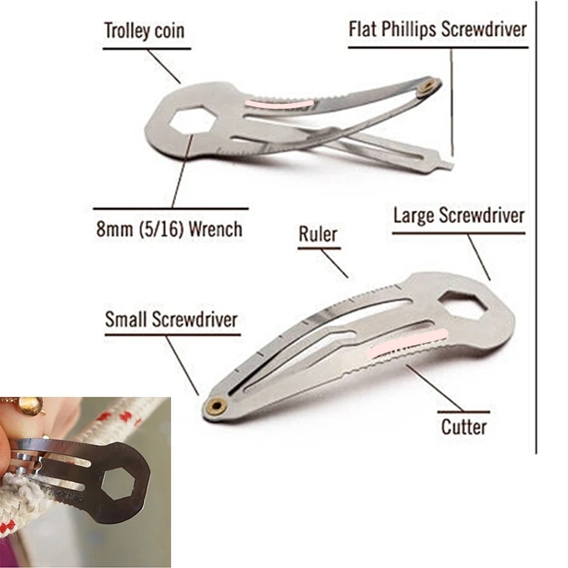 Уличная прочная заколка для волос, зажим для волос, линейка, резак, брелок из нержавеющей стали для повседневного использования, отвертка для выживания, карманные инструменты для путешествий