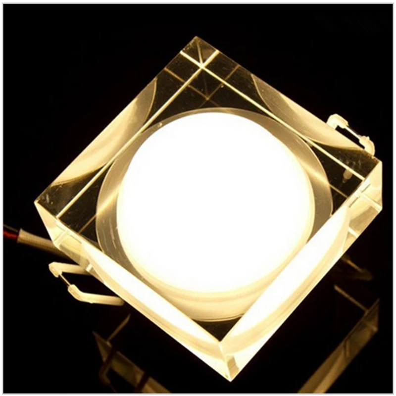 Светодиодный хрустальный светильник, квадратный 1 Вт 3 Вт 5 Вт 7 Вт, светодиодный потолочный встраиваемый светильник 85-265 в, настенный Точечный светильник для шкафа, домашнее освещение