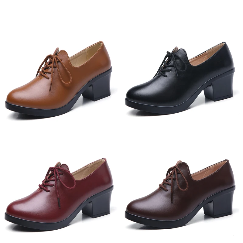 Женские туфли-оксфорды EOFK, из натуральной кожи, на высоком квадра...