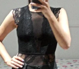 qualité correcte. tissu élastique. dentelle sur les hanches un peu trop large