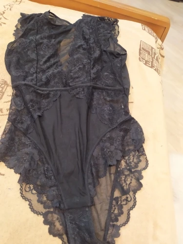 Боди очень классный и качественный,но немного отличается от фото предоставленного магазином,нижняя часть плотного кружева на самом деле подсвечивается она не такая плотная.размер xl на параметры 98,80,106 сел отлично
