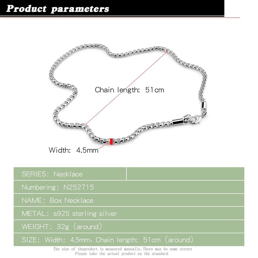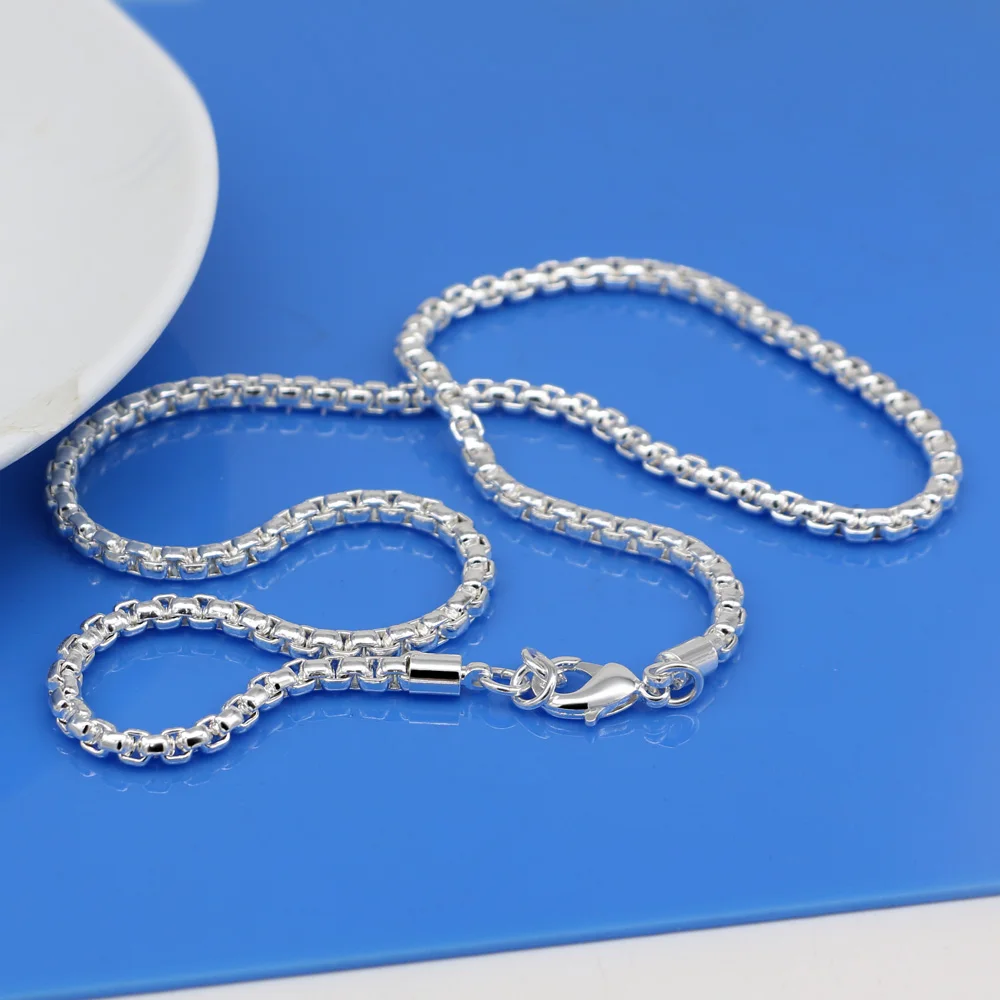 Ожерелье из стерлингового серебра 925 пробы, мужское классическое ожерелье в коробке, однотонное серебряное ожерелье для мальчиков, подарок на день рождения, популярные серебряные ювелирные изделия