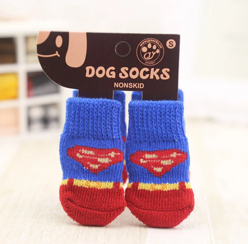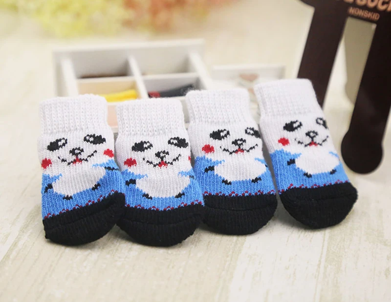 Теплая для щенков собак Носки для домашних животных, Мягкие акриловые нескользящие носки с милым мультяшным рисунком, Размеры SML, 4 шт.