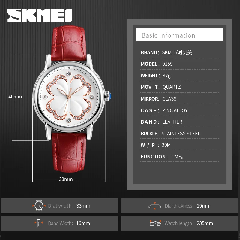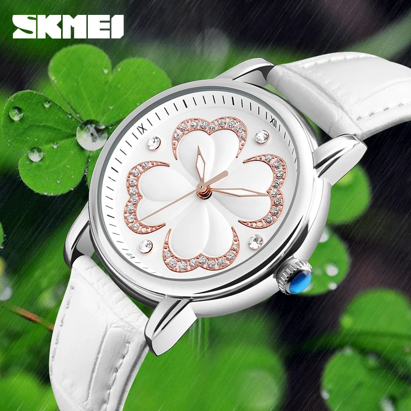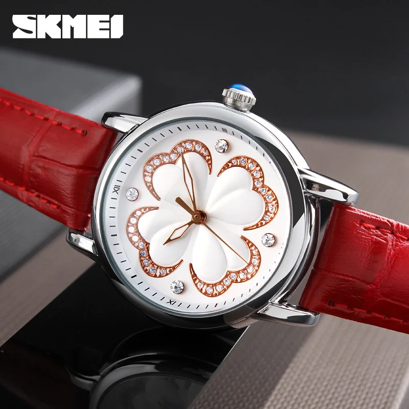 Часы наручные SKMEI женские кварцевые, люксовые брендовые модные водонепроницаемые с кожаным ремешком, для дайвинга до 30 м, 2017