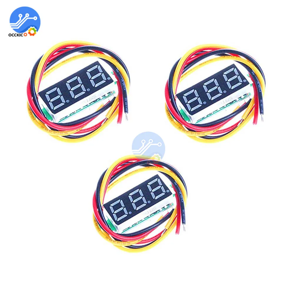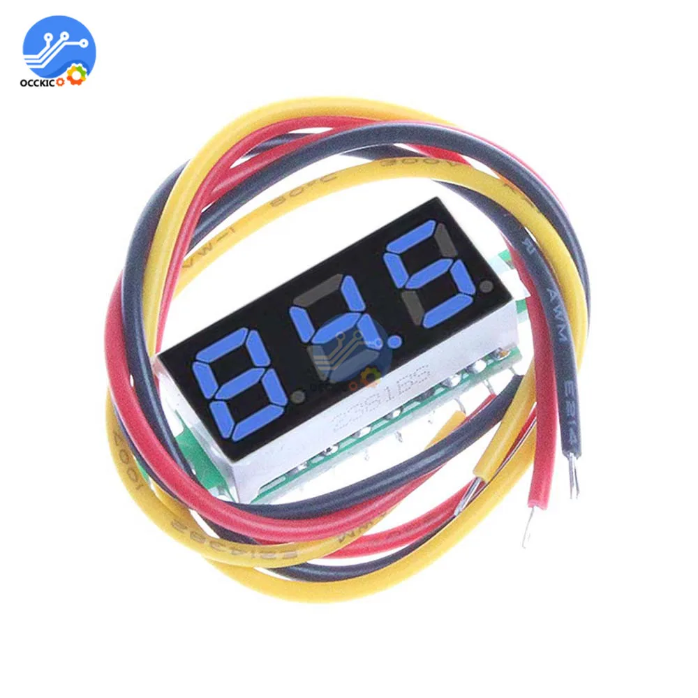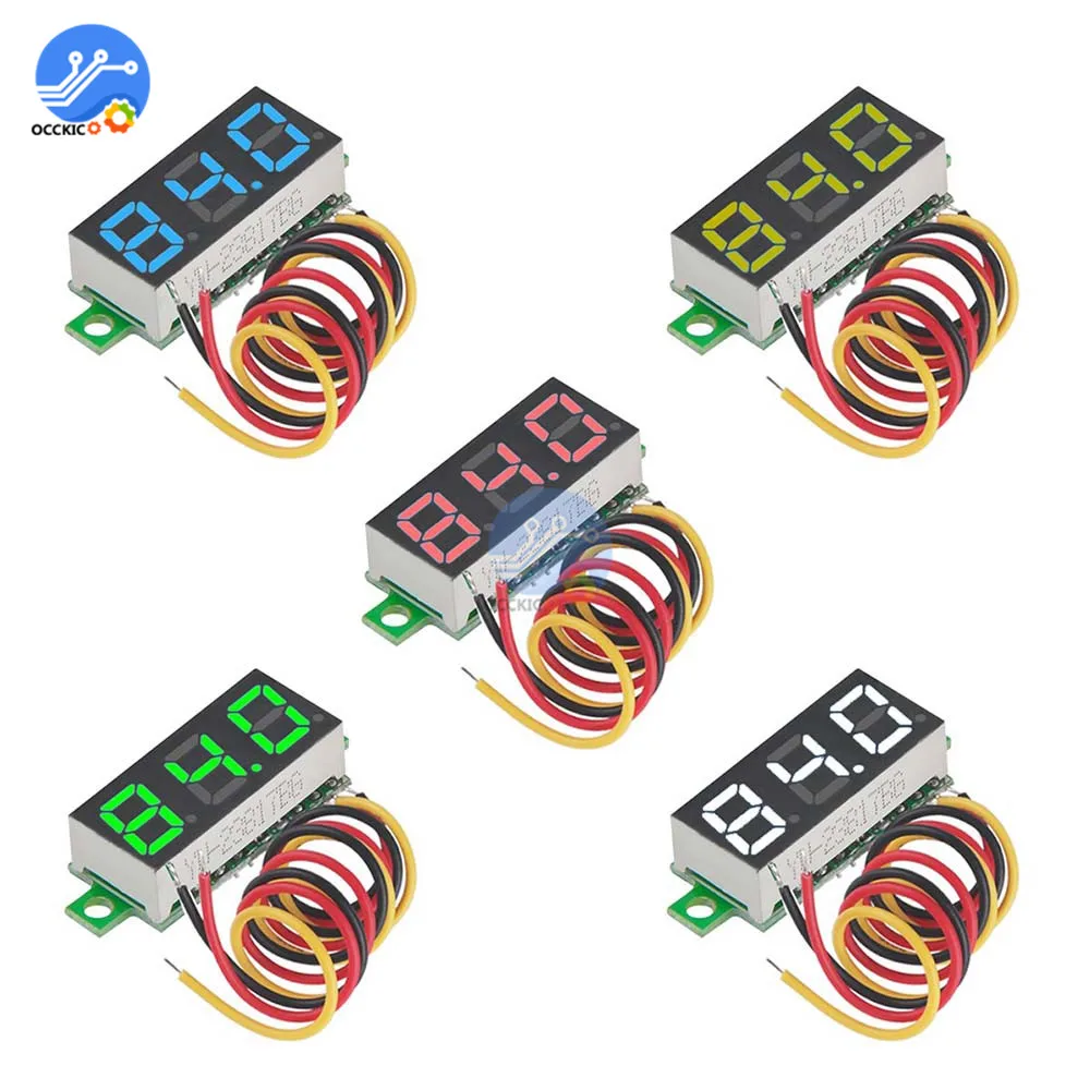 Портативный вольтметр, измеритель напряжения с ЖК светодиодный дисплеем, 0,28 дюйма, 3 провода, 0-0,28 в пост. Тока, синий, красный, зеленый, желтый цвета