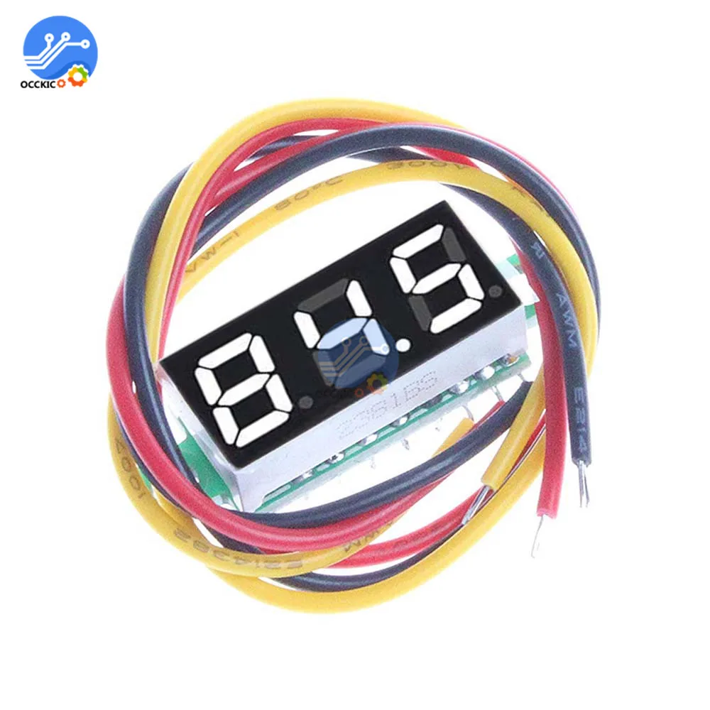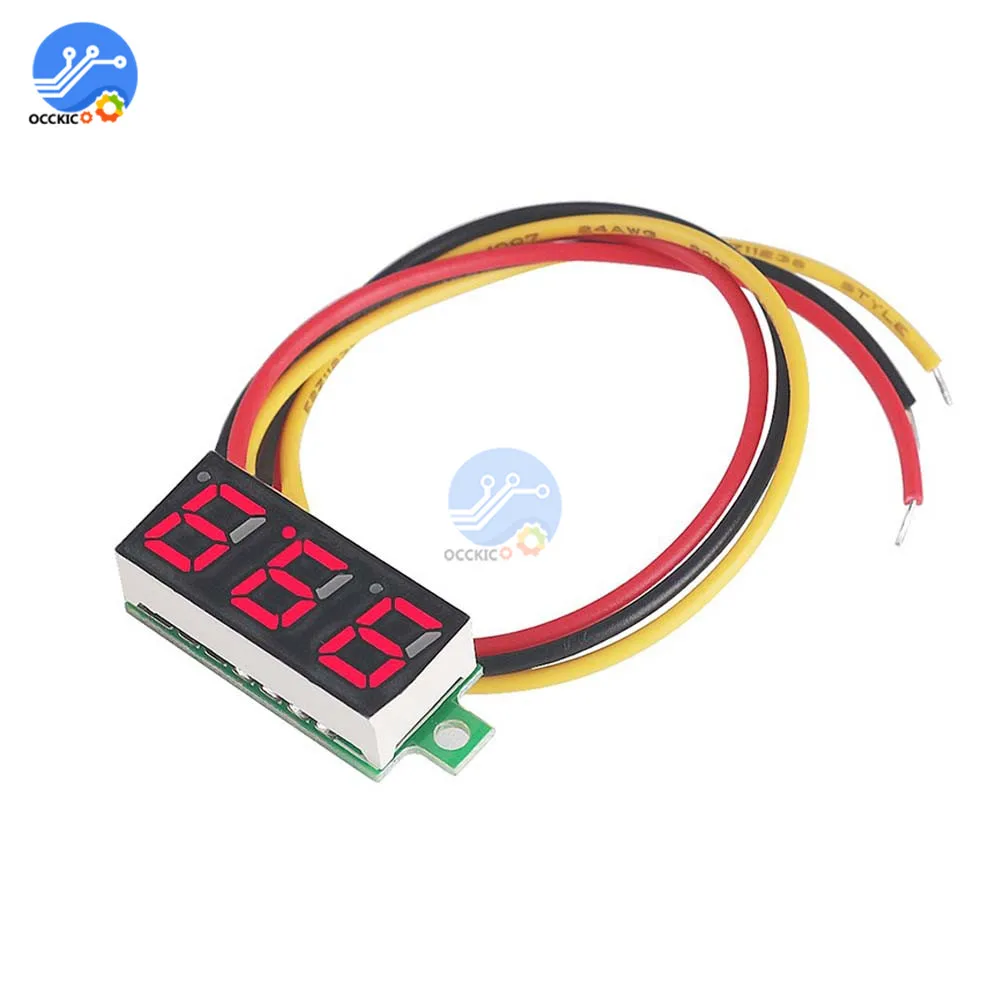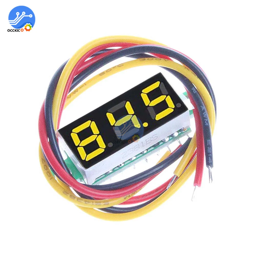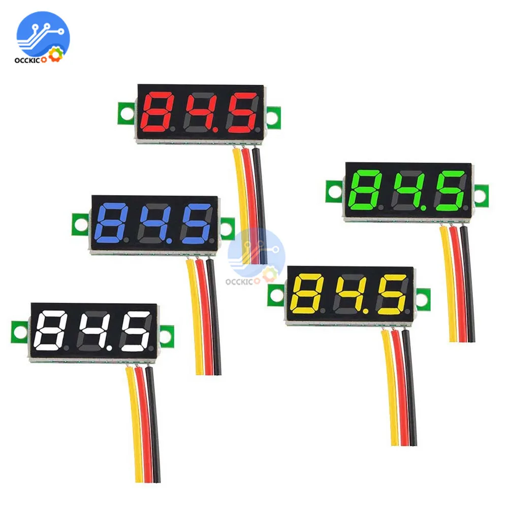 Портативный вольтметр, измеритель напряжения с ЖК светодиодный дисплеем, 0,28 дюйма, 3 провода, 0-0,28 в пост. Тока, синий, красный, зеленый, желтый цвета