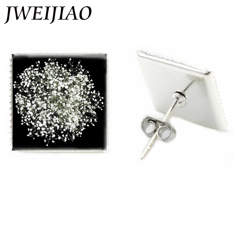 JWEIJIAO модные брендовые ювелирные изделия элегантные квадратные серьги Гипсофила метельчатая стеклянная кабошон серьги-гвоздики J245