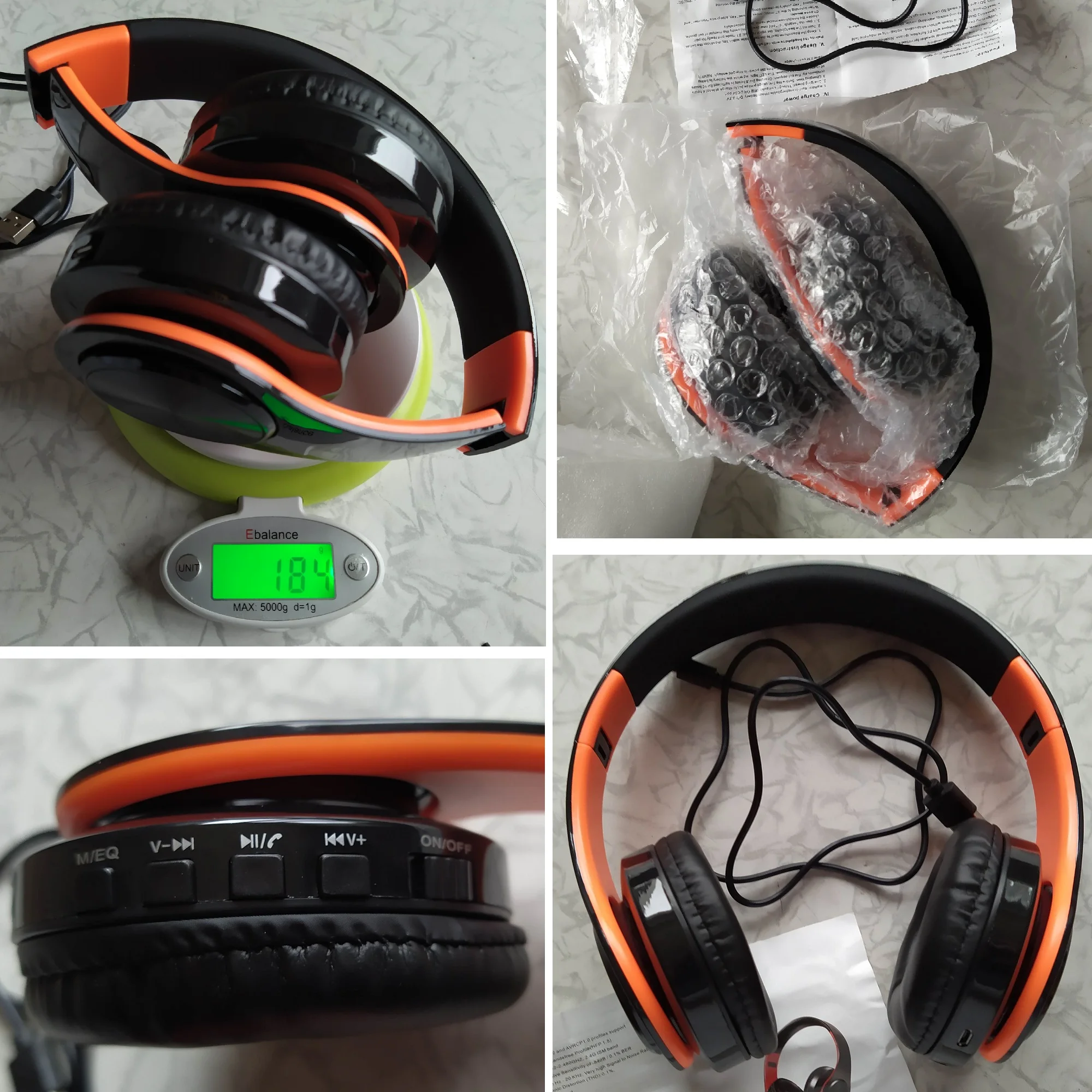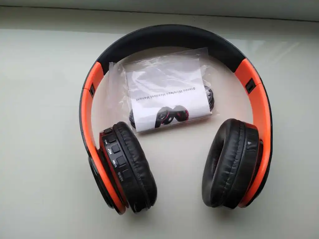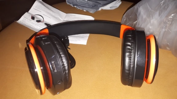 Хорошие наушники. Пришли быстро, 18 дней. При распаковке был запах. Через час выветрился. К телефону и компьютеру подключились сразу. С картой памяти тоже прекрасно играют. Есть радио, но в панельной квартире ловит плохо. Возможно на улице будет лучше, но я их для дома брала. Звук хороший, а вот сами наушники жестковатые и тугие. Уши устают. Заряда на долго хватает. Покупала за 550. Хорошие наушники за не дорого.