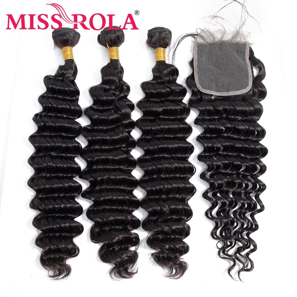 Miss Rola волосы малазийские глубокая волна 3 пряди с закрытием натуральный цвет 100% человеческие волосы 8-26 дюймов не Remy волосы для наращивания