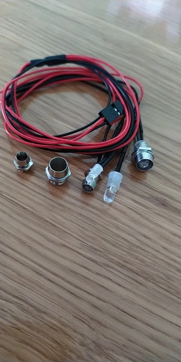 СИД Размер: белый светодиод 5 мм (0,20 дюйма), красный светодиод 3 мм (0,12 дюймов) Цвет линии: черный и красный Материал: металл, пластик Длина провода: 60 см/23,62" Количество: 1 комплектПосылка включает в себя: