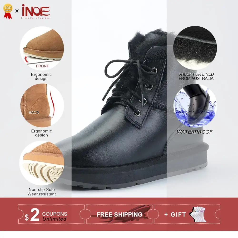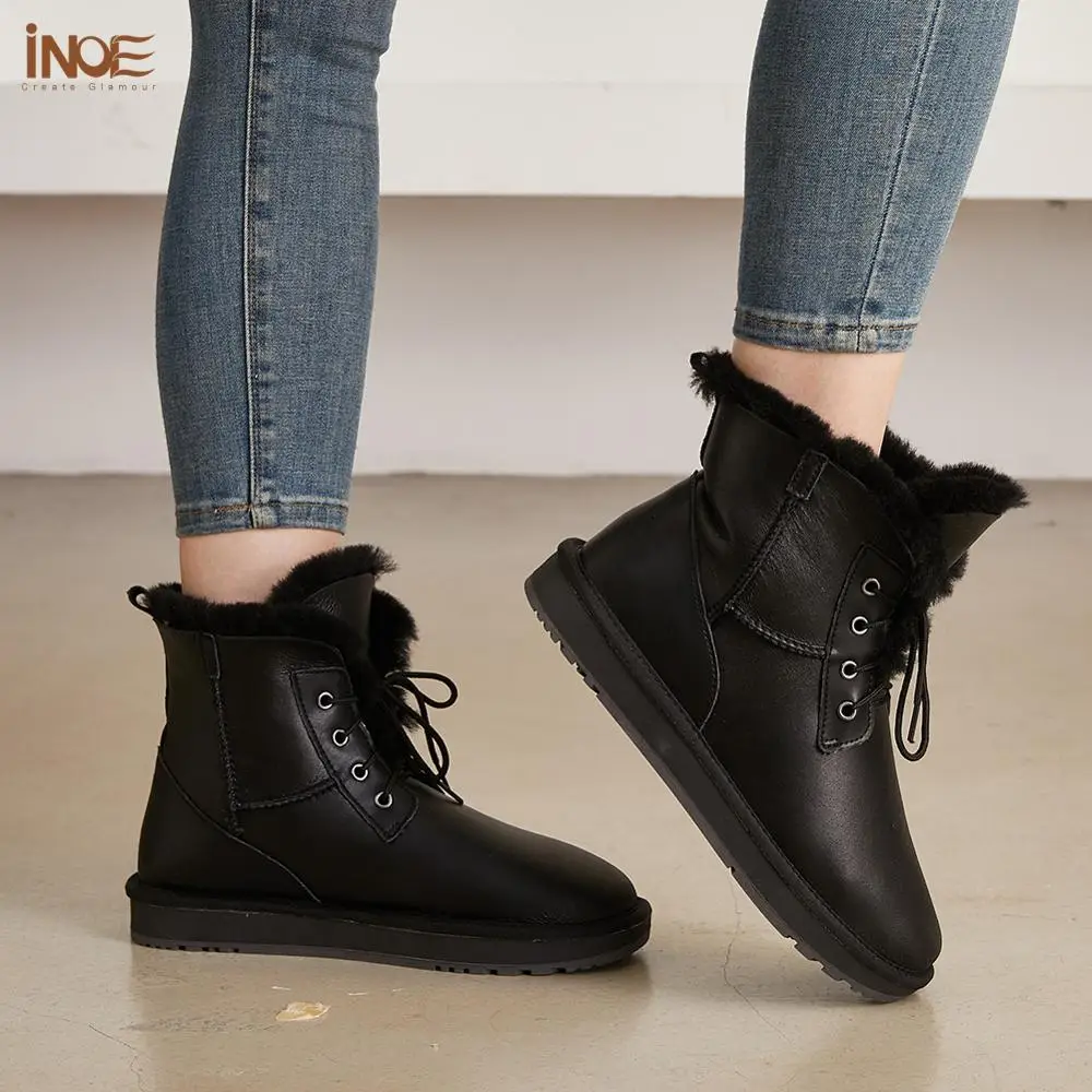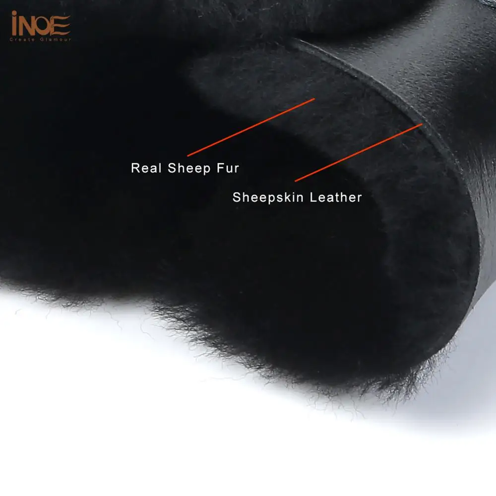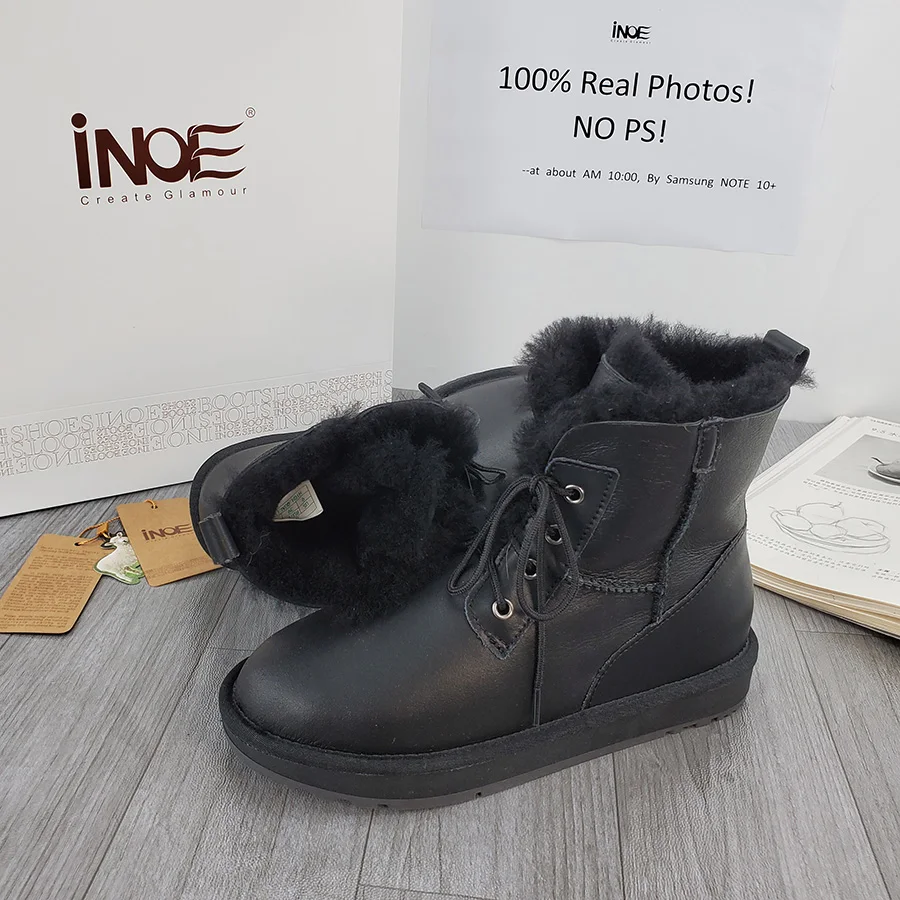 INOE Повседневные зимние зимние сапоги до щиколотки на подкладке из натуральной овчины из натуральной овечьей кожи для женщин, теплая обувь, непромокаемый черный