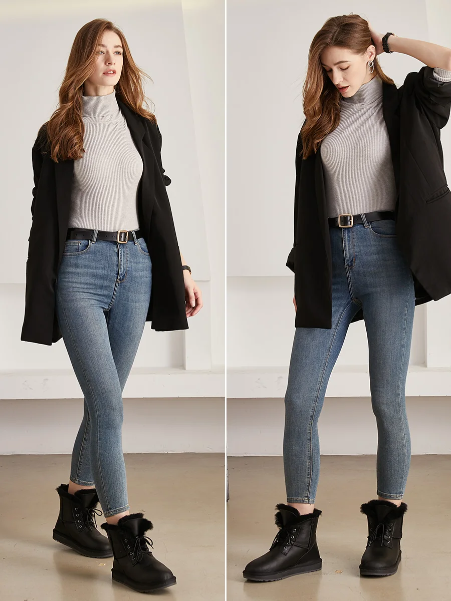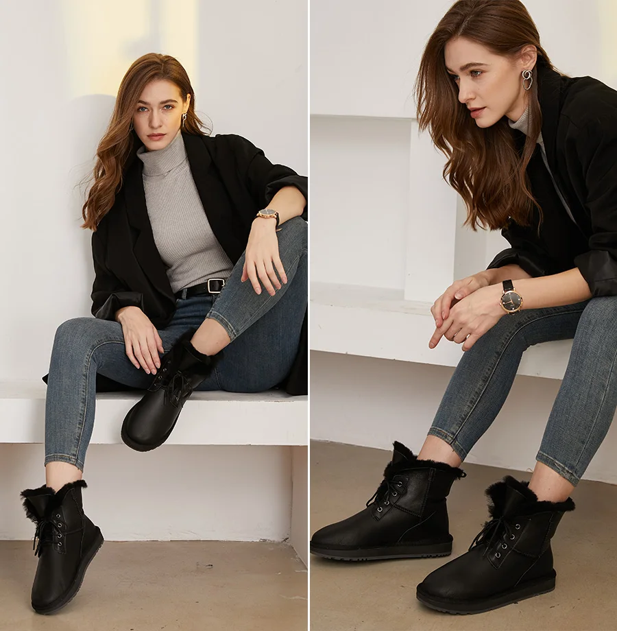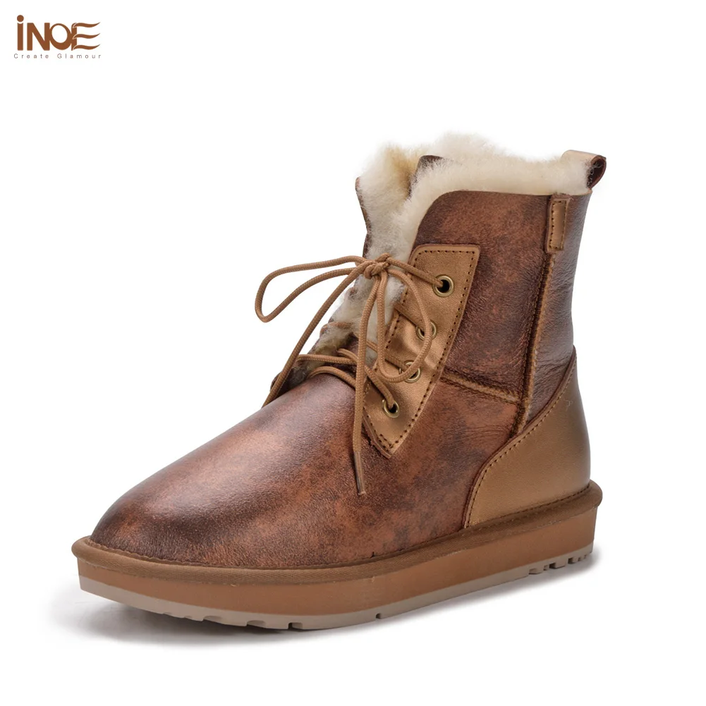 INOE Повседневные зимние зимние сапоги до щиколотки на подкладке из натуральной овчины из натуральной овечьей кожи для женщин, теплая обувь, непромокаемый черный