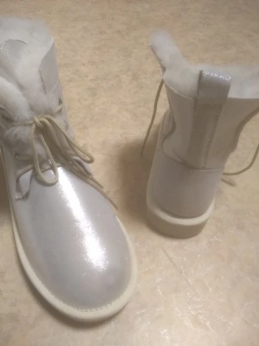 Великолепные зимние угги! Качество отличное! Ботиночки очень красивого мерцающего цвета, выглядят точно как на фото. Материал верха приятный и гладкий, а внутри толстый слой натурального меха. На 22,5см стопы отлично подошёл 6 размер. Очень быстрая доставка! Большое спасибо! ^_^