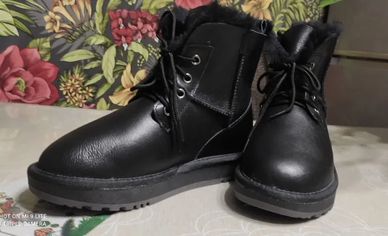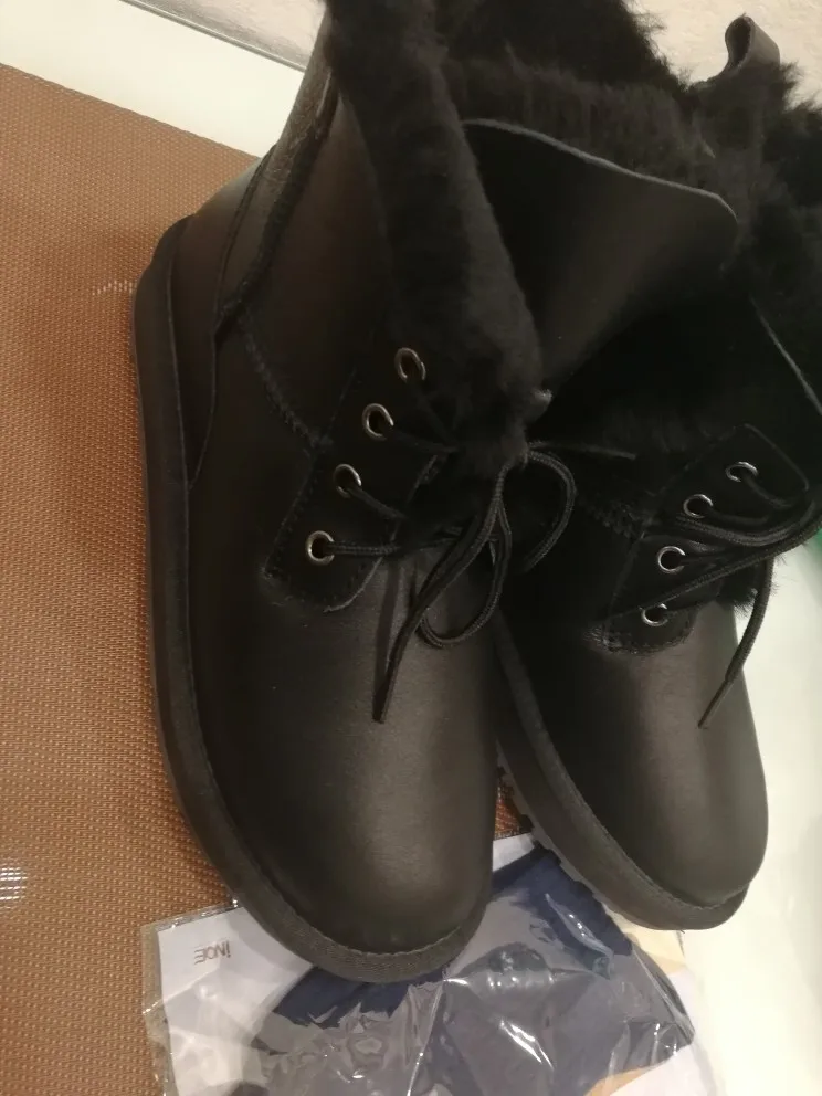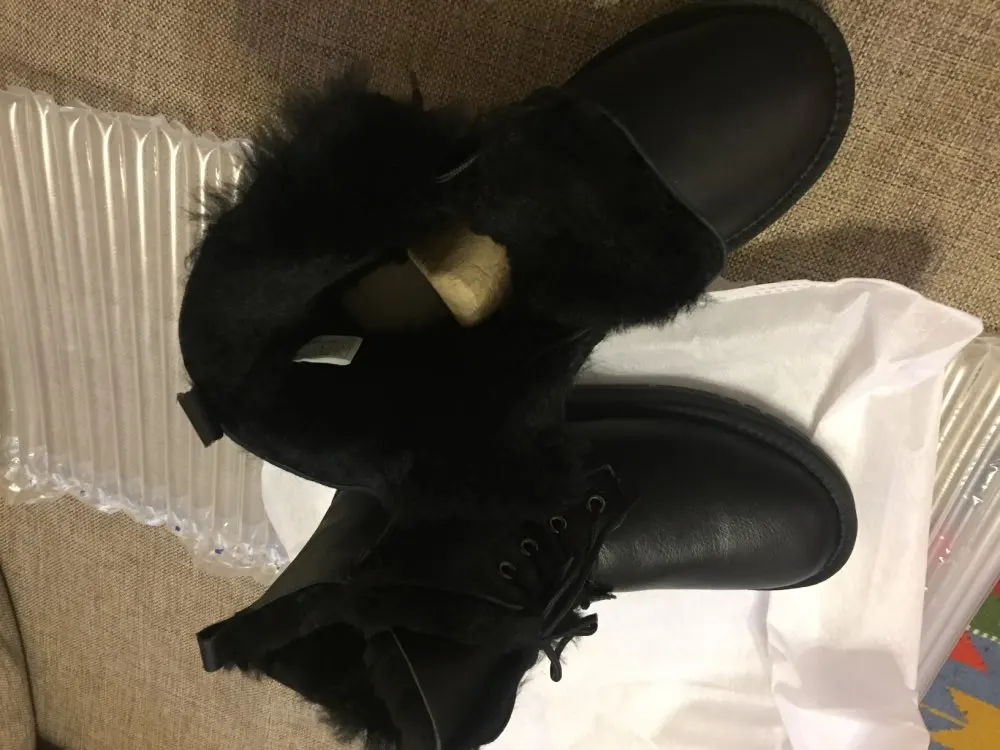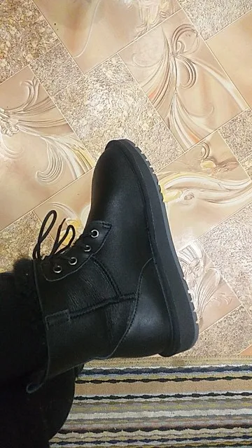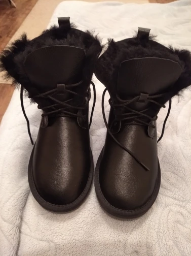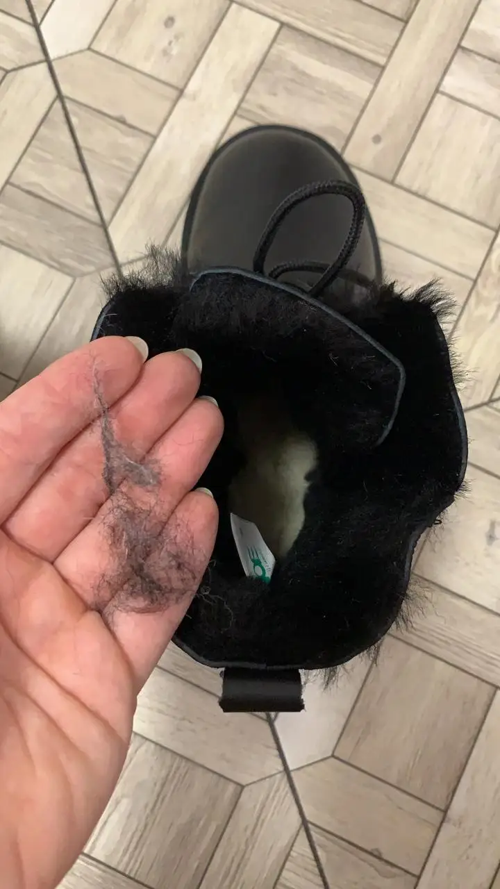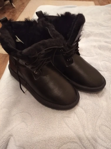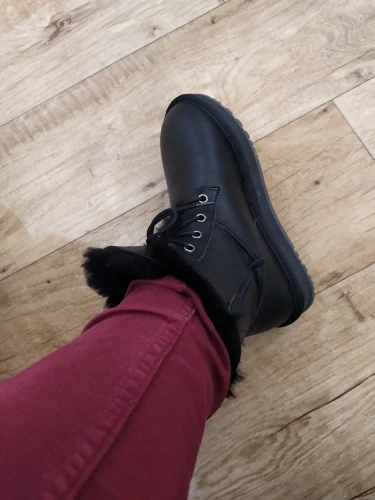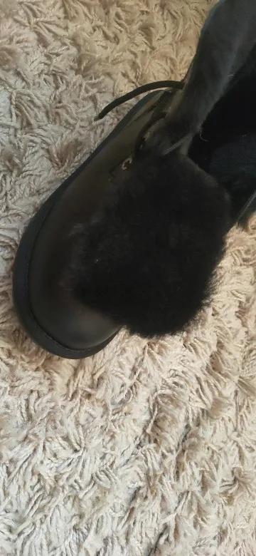 это уже 4я пара обуви с этого магазина. угги и кеды ношу уже 3 года , с ними все отлично. в этот раз с мужем заказали одинаковые черные ботинки. мне нравится как выполнены. я ношу только второй день и мне красит носок в темный и пока остается немного меха. а так по теплу все отлично