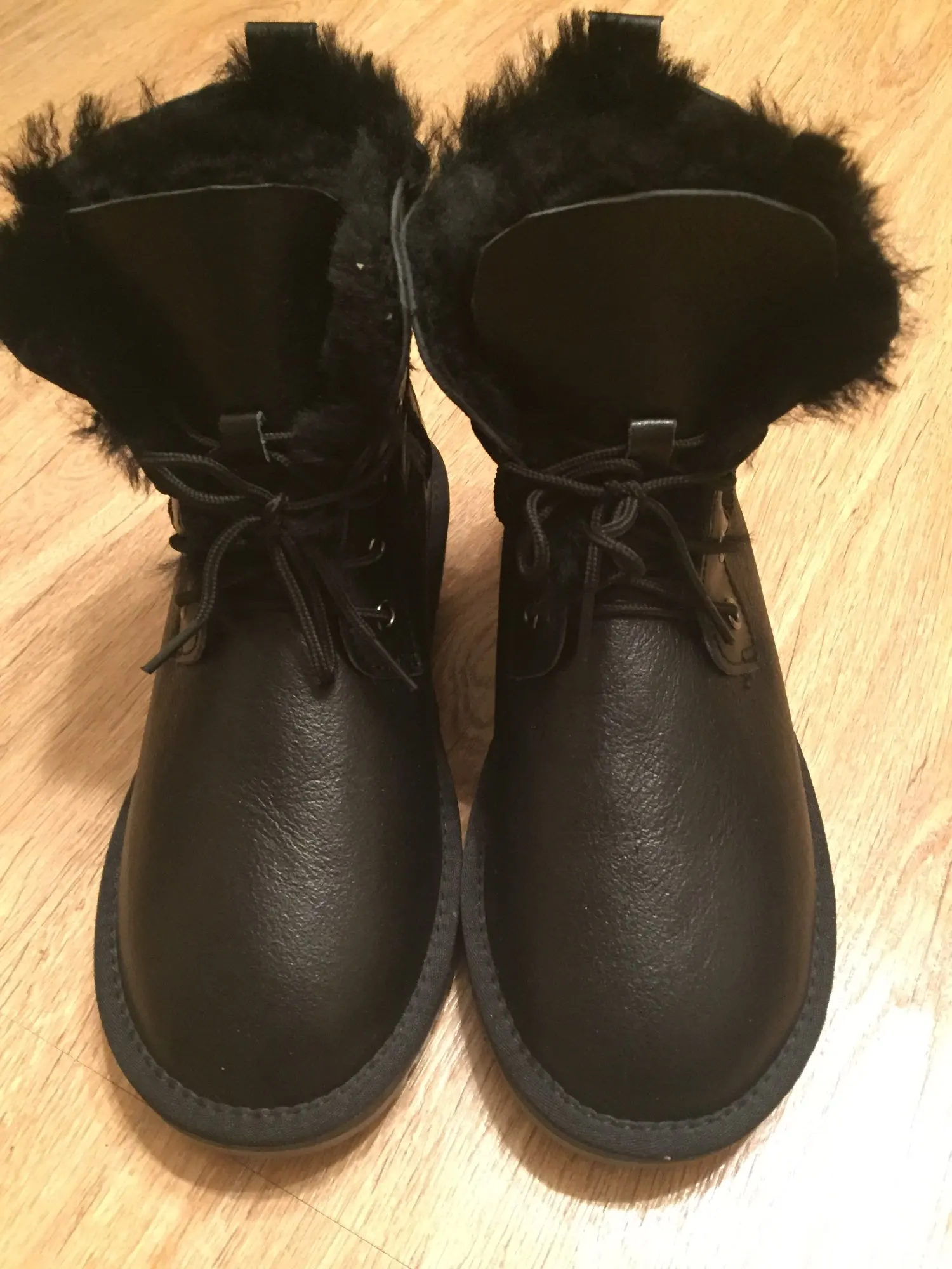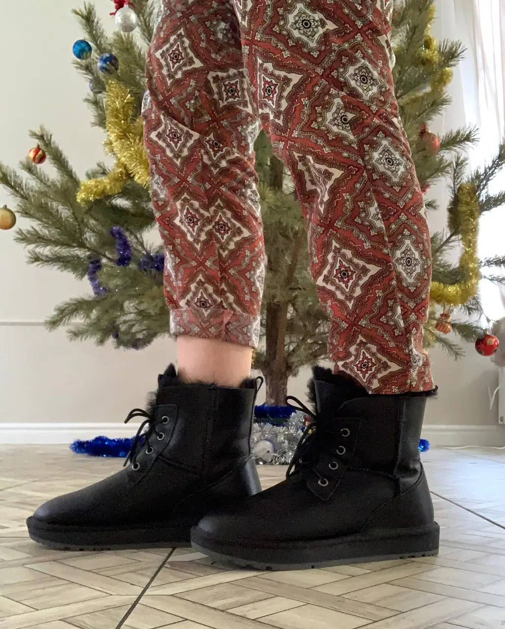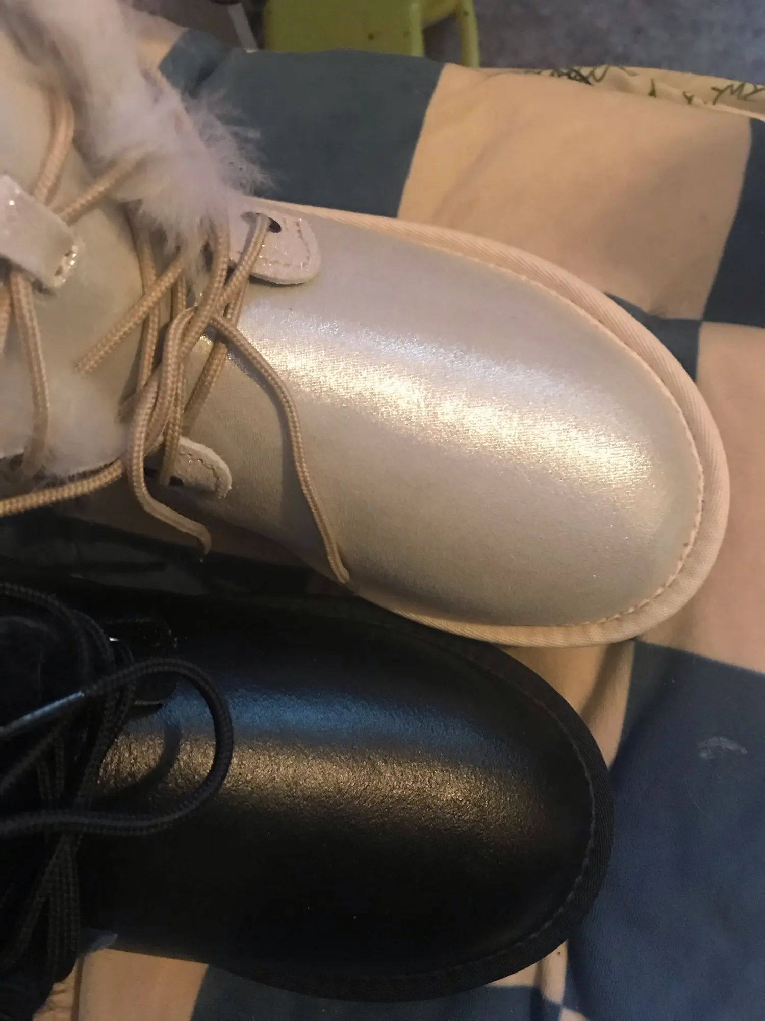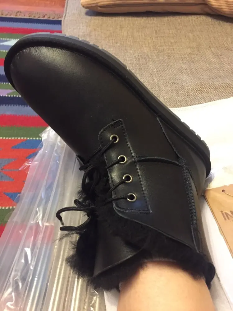 это уже 4я пара обуви с этого магазина. угги и кеды ношу уже 3 года , с ними все отлично. в этот раз с мужем заказали одинаковые черные ботинки. мне нравится как выполнены. я ношу только второй день и мне красит носок в темный и пока остается немного меха. а так по теплу все отлично
