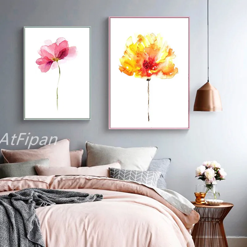 Плакат с акварелью и цветами, красочная красивая роза, холст, картина, скандинавский минималистичный настенный Рисунок, картина квадраros, домашний декор