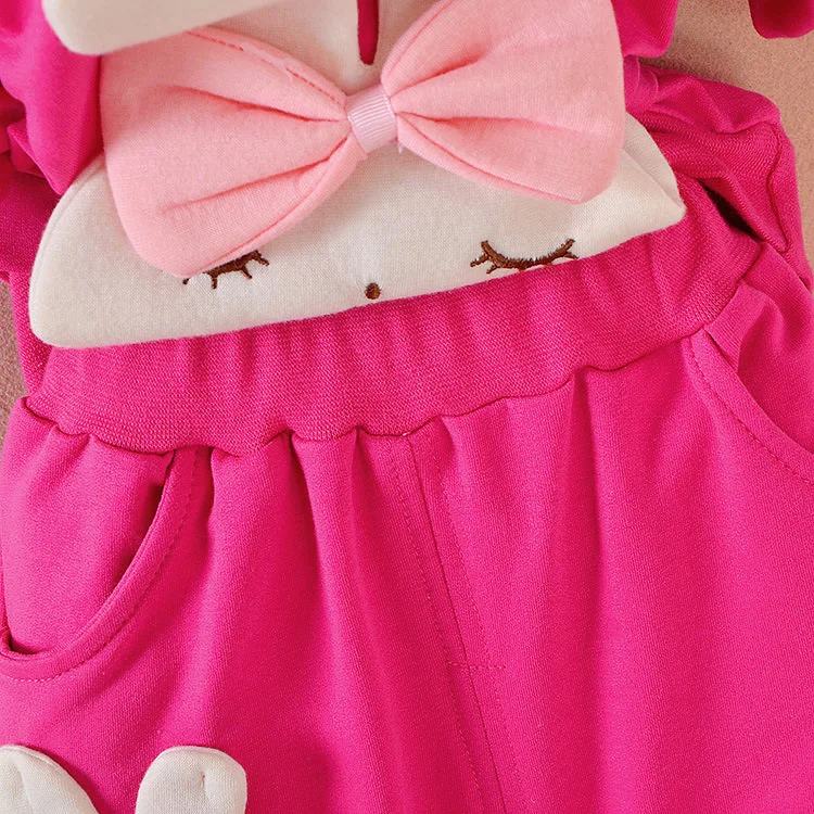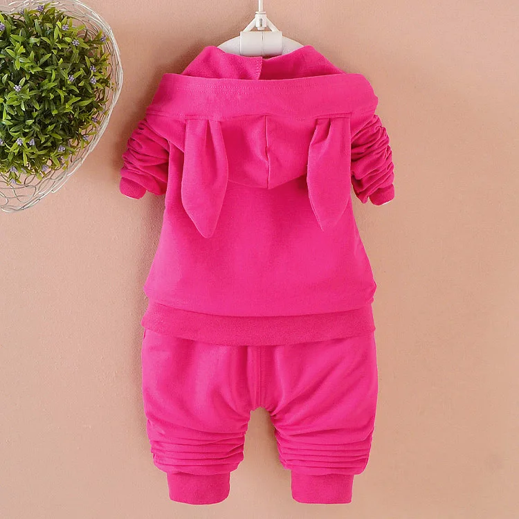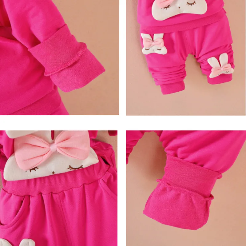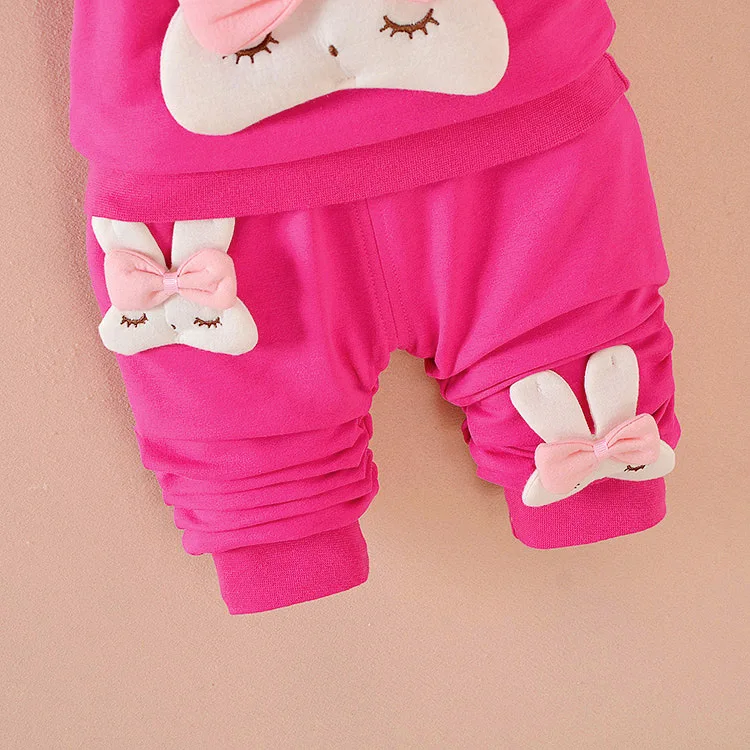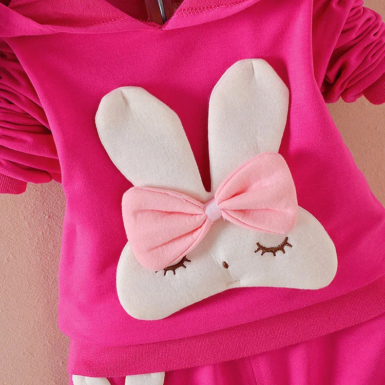 Одежда для маленьких девочек, весенне-осенний хлопковый костюм, Повседневный свитер с капюшоном и милым кроликом для девочек, костюм из двух предметов, От 0 до 3 лет