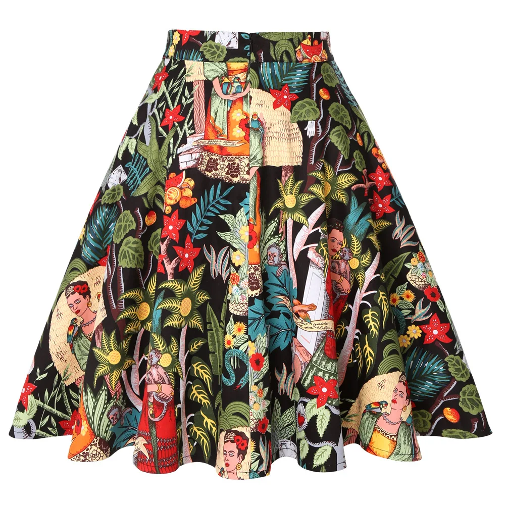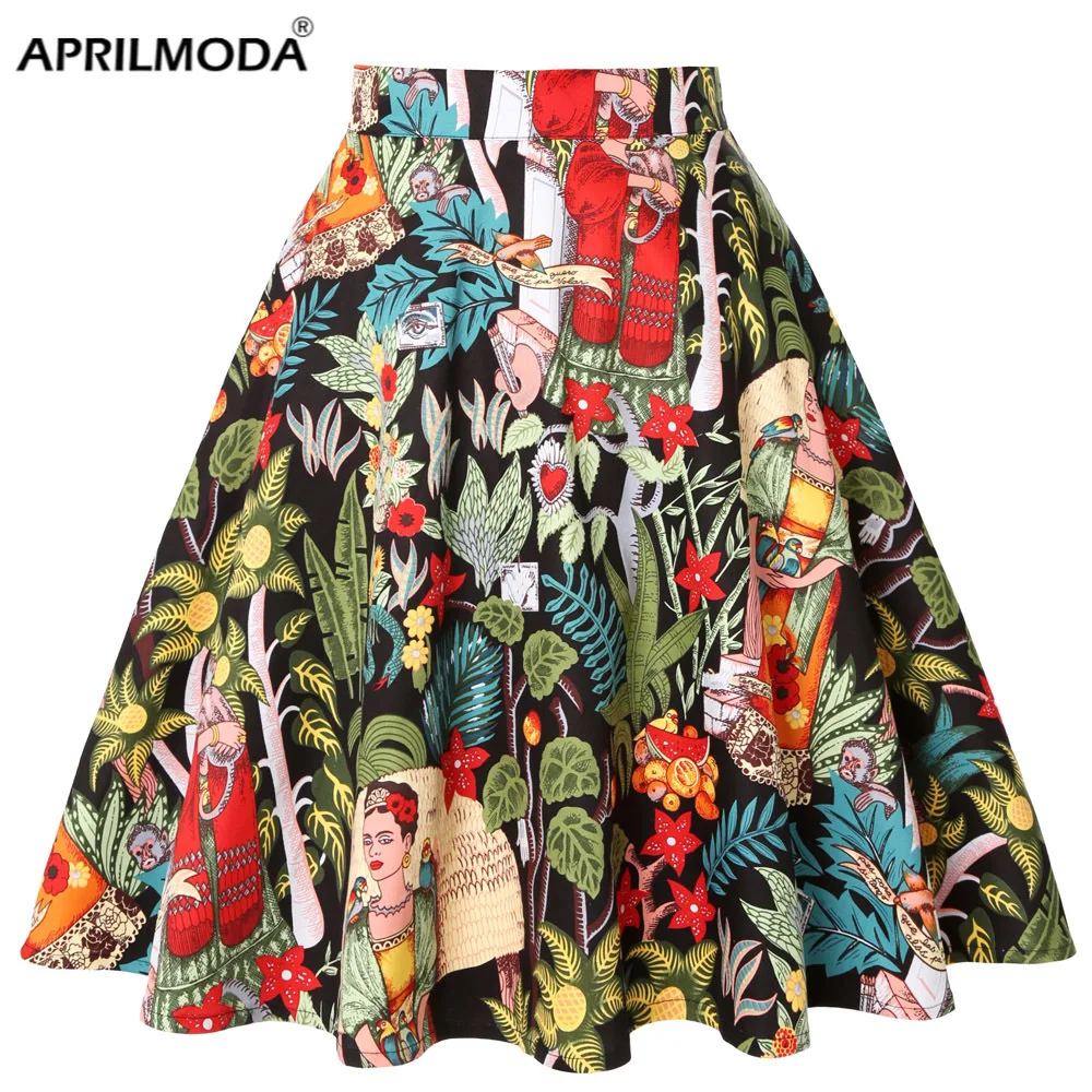Женская подиумная хлопковая Ретро винтажная юбка черная Faldas с высокой талией А-линия рокабилли Jupe 50s качели зонтик юбки Pin Up Skater