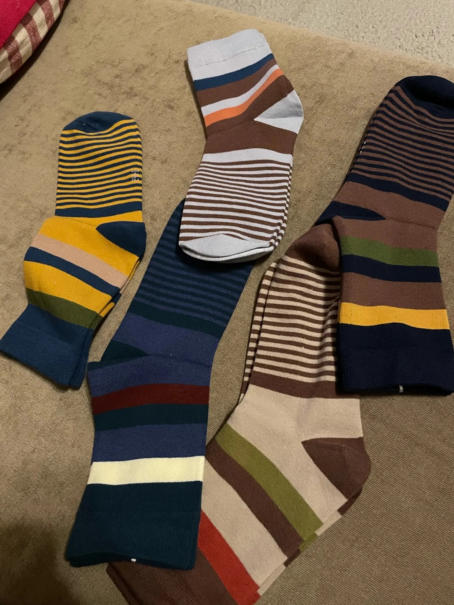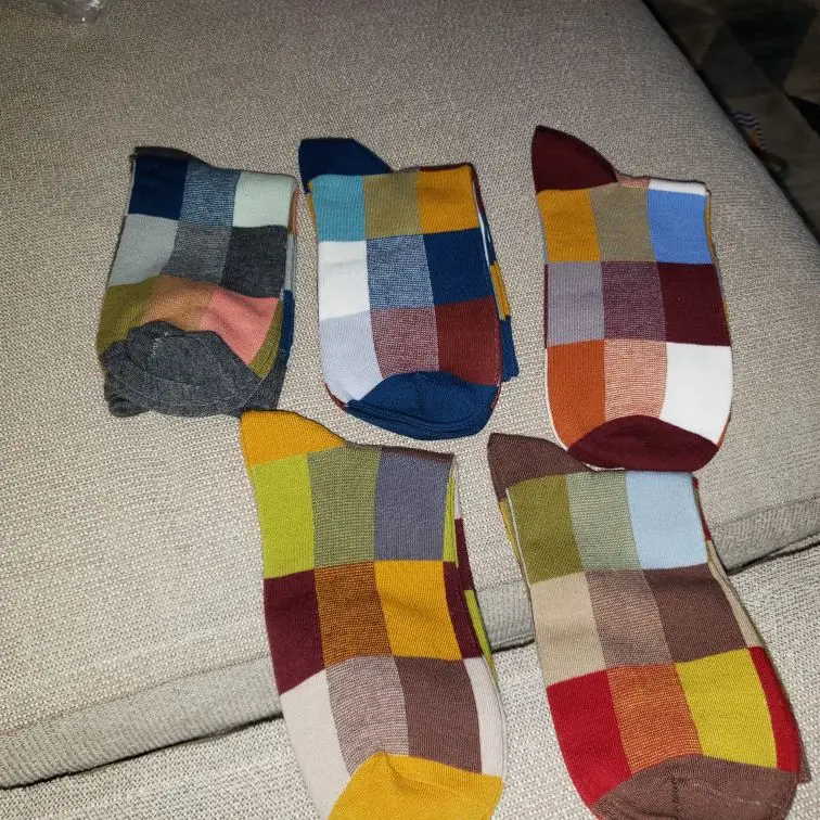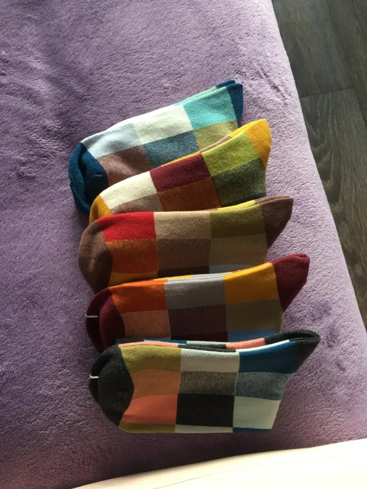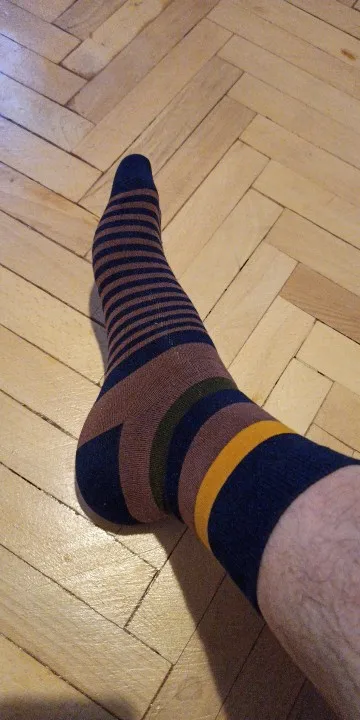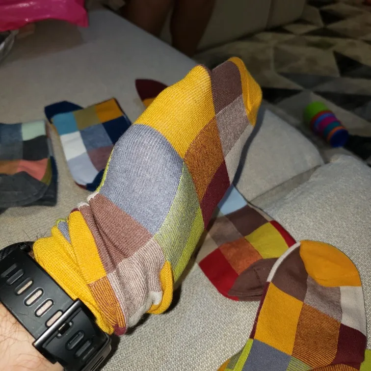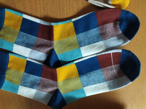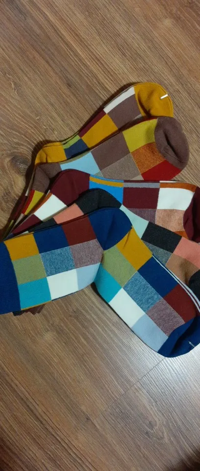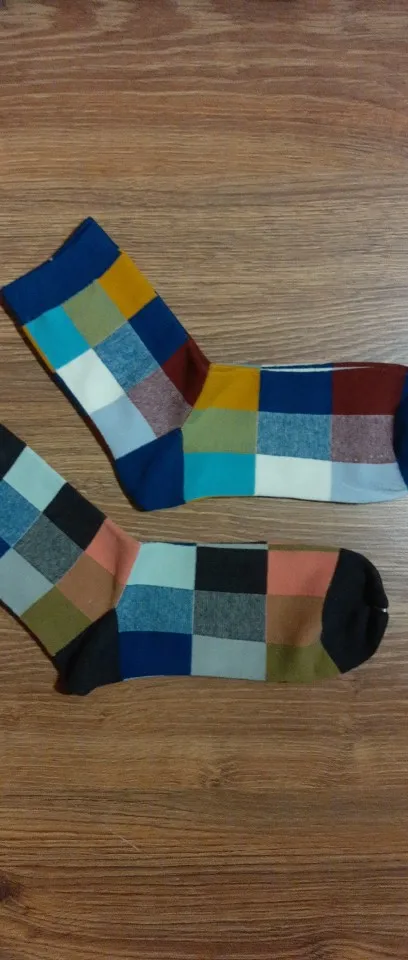 Носки прям супер. Заказываю уже второй раз у этого продавца. С предыдущими за год ничего не случилось, не протерлись, не порвались. Размер 41 сидят идеально, не передавливают. Доставка вообще вне всяких похвал. 7 дней из Китая в Ростов. В полоску по ощущениям немного тоньше, чем в квадратик, но все равно классные.
