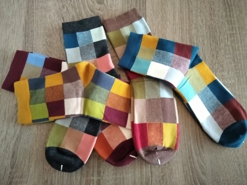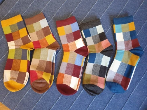 Шикарные носки, не тоненькие и не толстые, брали на женскую ногу 41 размера, сидит отлично, как влитые, не съезжают. Сначала взяли в квадратик, очень понравились, сразу заказали еще и в полоску. Товар идёт недолго.