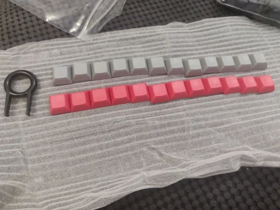 Приятные на ощупь колпачки для ключей. Немного розовый, а не темно-красный. Все еще, выглядит довольно хорошо.