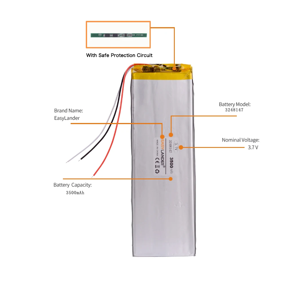 Литий-полимерный аккумулятор 3248147, 3500 мА ч, 3,7 в, для 7-дюймовых ирбис TX18, TX21, TX27, TX69, TX71, TX77, TX50, TX55, 3G, DIGMA Optima 7,5, 3G