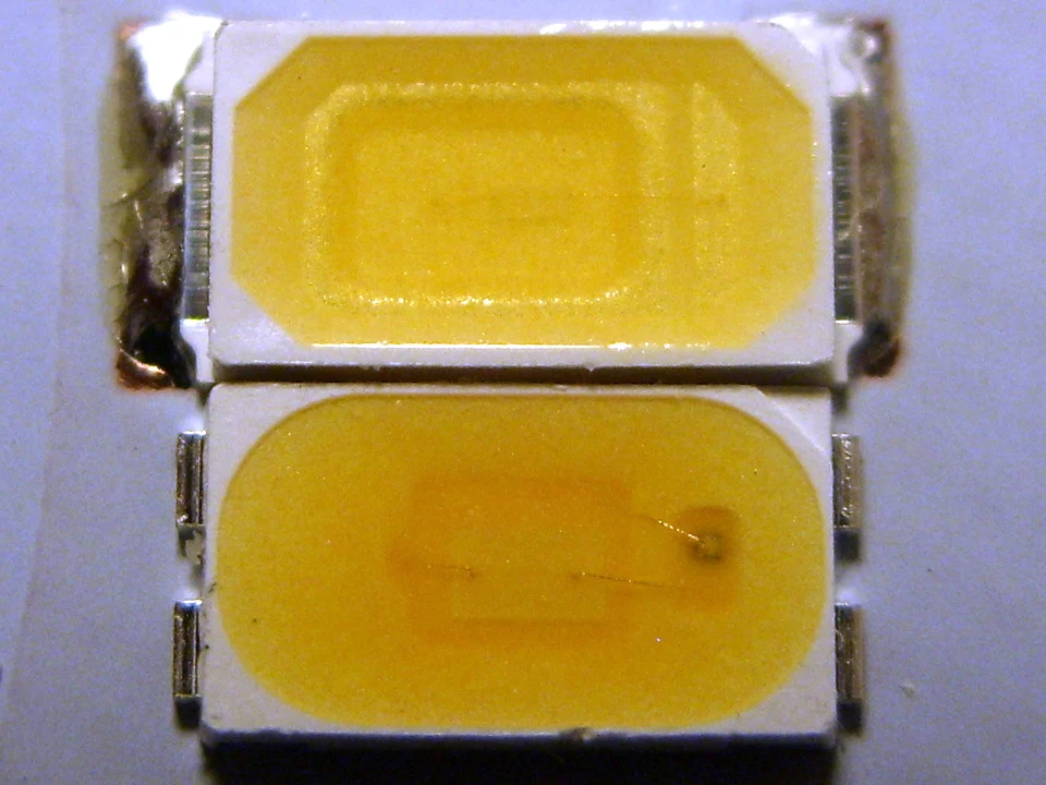 В общем рассказываю... Заказал 200 штук, попросил продавца разделить 100 4000к и 100 2700к. Продавец все сделал правильно, (4000к смотрите на первом фото) но диоды LG на 2700 из этого лота оказалось отличаются от того, что было на фото в отзывах, и от схемы в фотографиях лота. Не соответствовал описанию. Пришли диоды LG с двумя маленькими кристаллами. (второе фото) Как потом оказалось, это действительно были LG, но, поскольку описанию не соответствовал, продавец выслал мне взамен этих другие, Сеул с самым большим кристаллом и CRI 90. (фото 3-5). Описание лота исправили, молодцы. Так что, чтобы получить то, что желаете, уточните у продавца на всякий случай, если не уверены. Продавец очень общительный, всегда поможет и подскажет! Доставка как всегда быстрая! P. S. На 4 фото не правильно передался цвет, на третьем и пятом фото более точно! Продавцу респект, хоть и дороговато :)