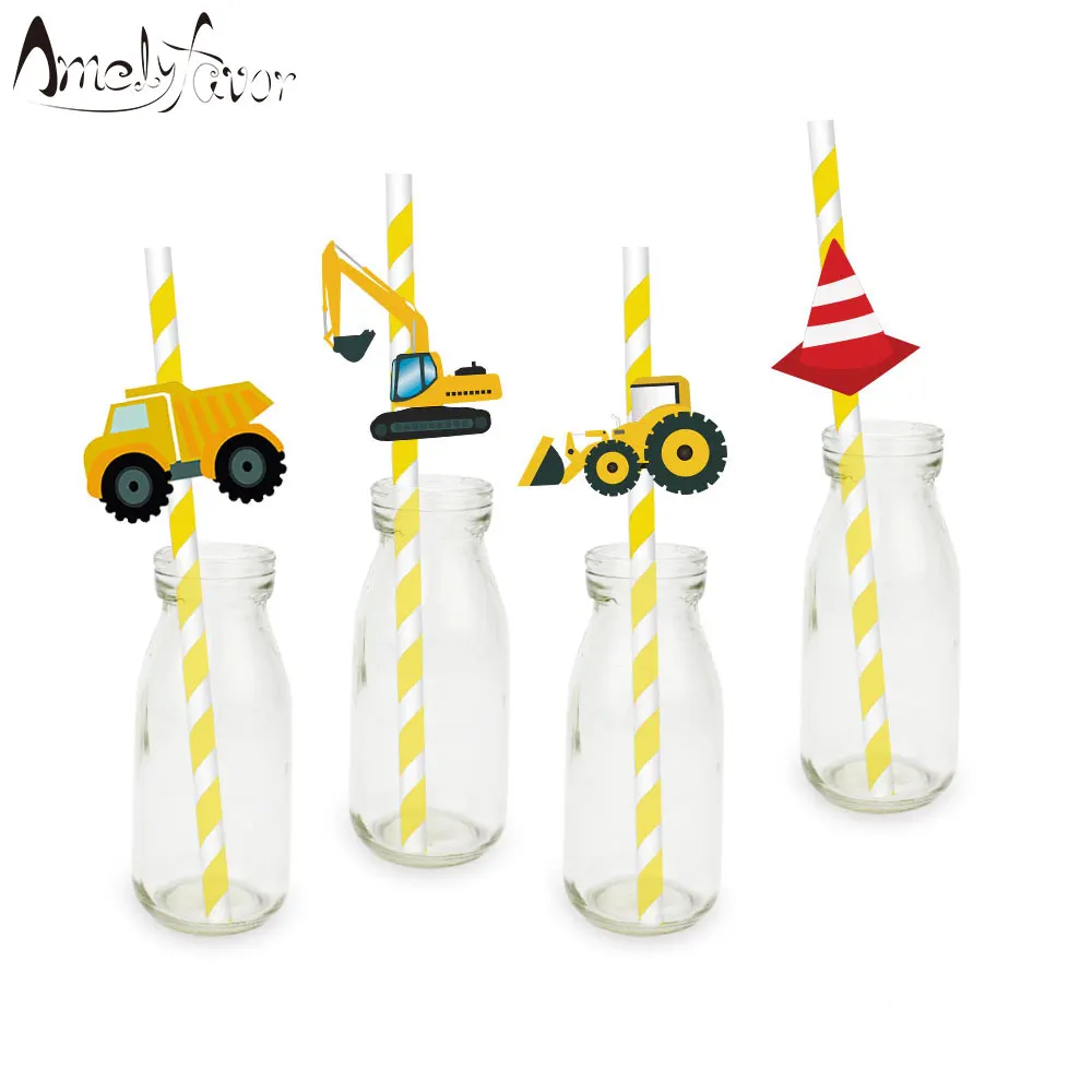 Соломенные соломинки для строительных грузовиков, 20 шт., соломки для дней рождения, для вечеринок, праздничные украшения, бумажные соломинки для питья, праздничные соломинки