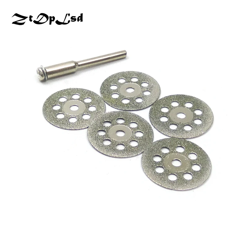 Алмазные режущие диски ZtDpLsd 5 шт., 22 мм, отрезное лезвие + 1 шт., хвостовик 3 мм, для вращающихся инструментов Dremel, абразивные диски, аксессуары для dremel