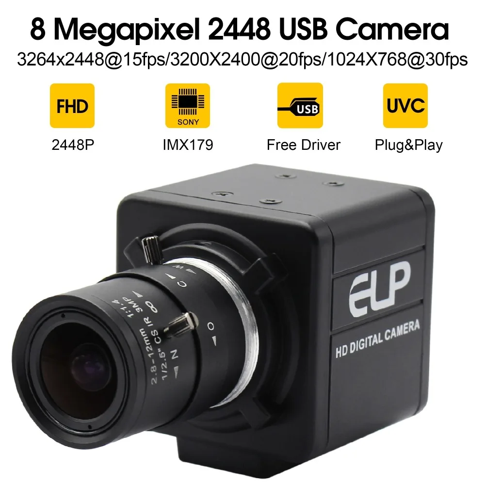 8MP 3264X2448 USB камера машинное видение веб-камера Sony IMX179 2,8-12 мм варифокальный CS Объектив коробка наблюдения промышленная камера с интерфейсом USB камера