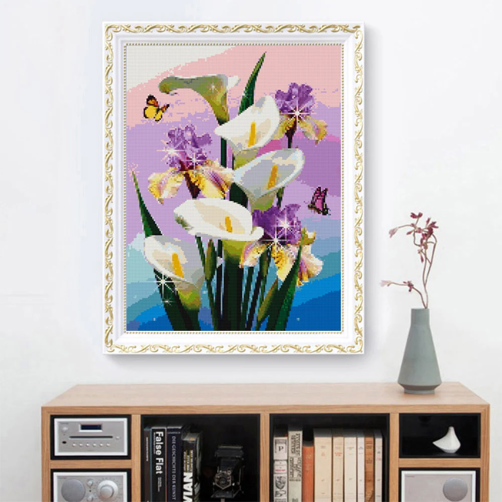 Картина из страз 5d "сделай сам", цветы ириса, вышивка стразами, флаг, мозаика, стразы, Декор для дома