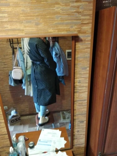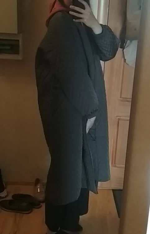 Очень широкое пальтишко. Довольно жесткое, стоит колом. На мои 165см рукава коротковаты. До Эстонии дошло за 9 дней!