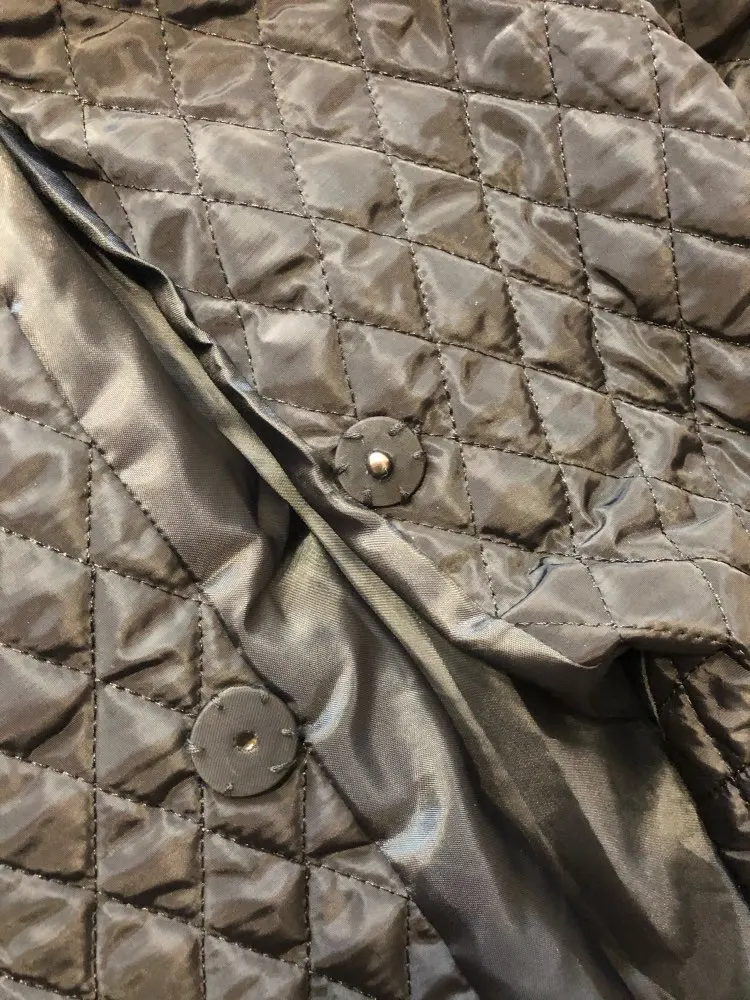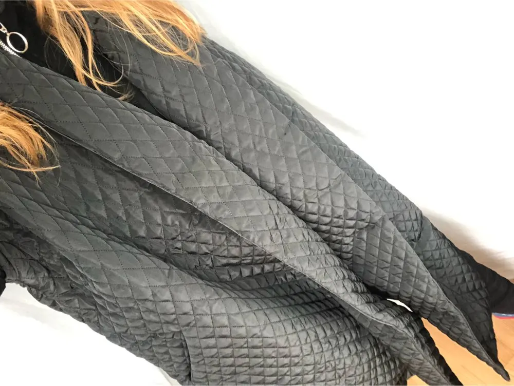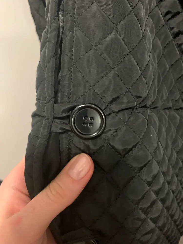 Очень крутой стёганный плащ! На рост 176 рукава хорошей длинны, сам плащ до середины икры. Качество супер, сзади есть разрез на пуговицах