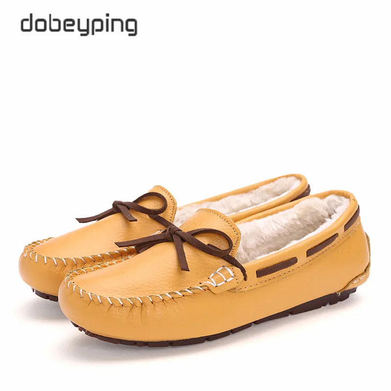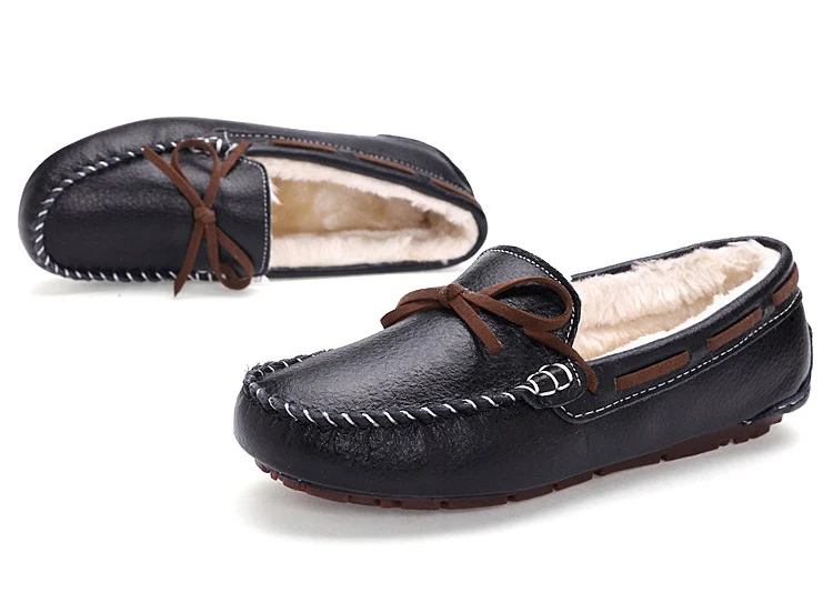 Мокасины женские зимние, из коровьей кожи, без застежек, с плюшевой подкладкой, Размеры 35-41