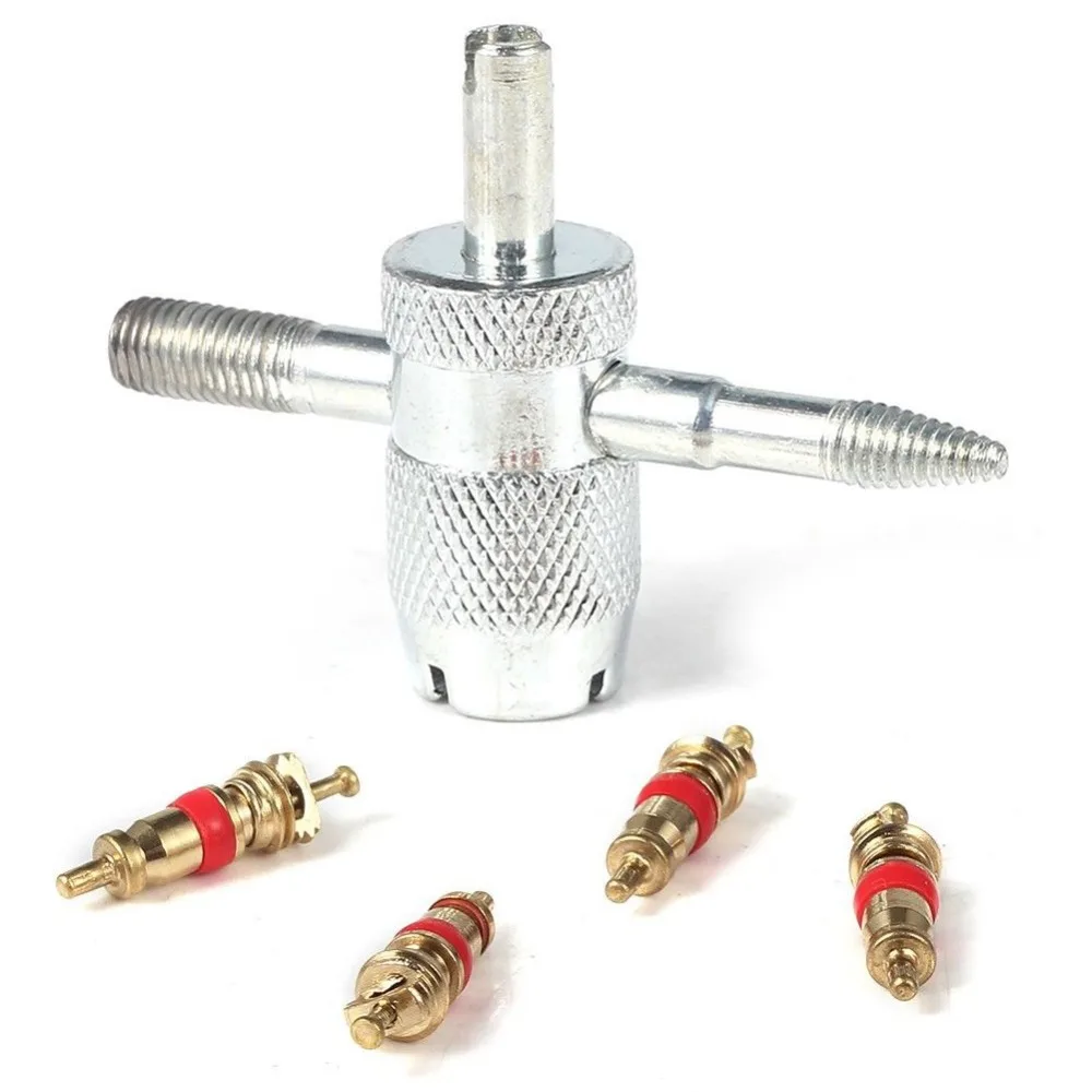 4-ходовой инструмент для удаления клапана шины для автомобиля аксессуар для велосипеда + 4 стержня клапана Core-3Z
