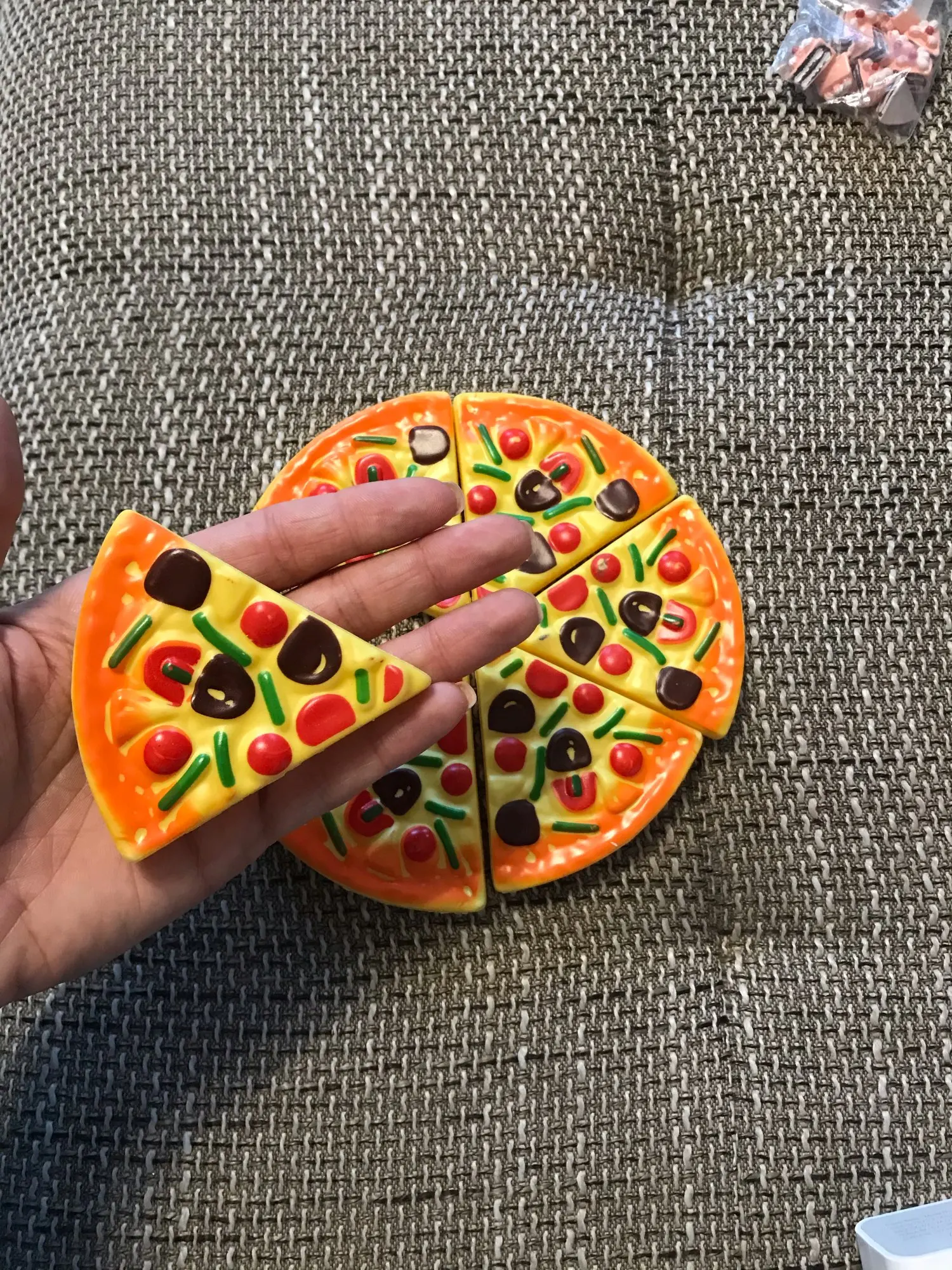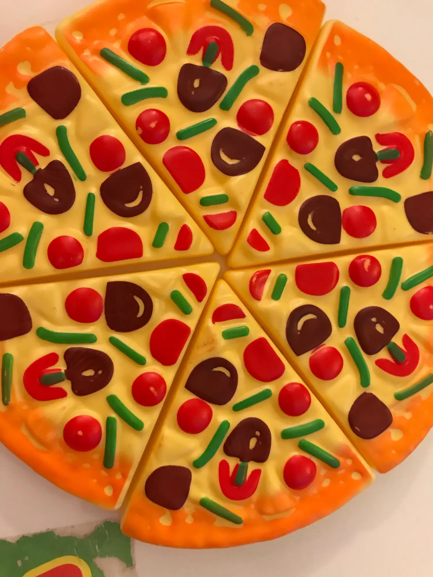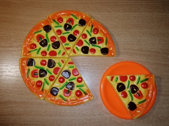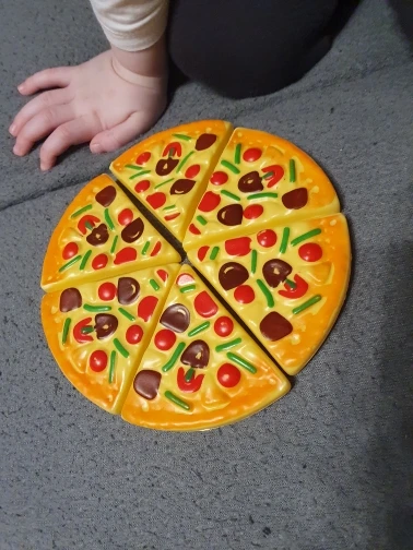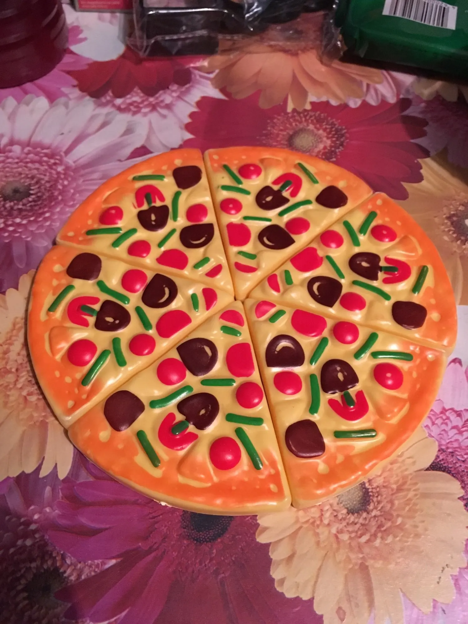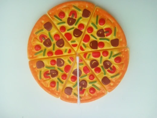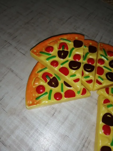 Небольшая пластиковая пицца,между собой кусочки никак не скрепляются, дети играют с удовольствием