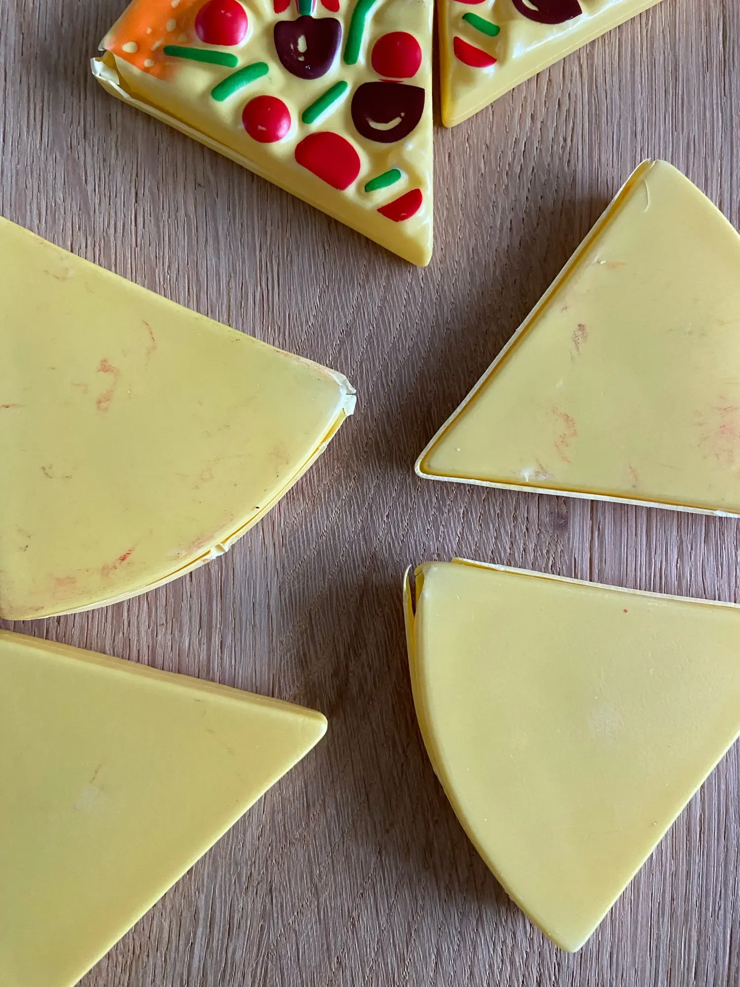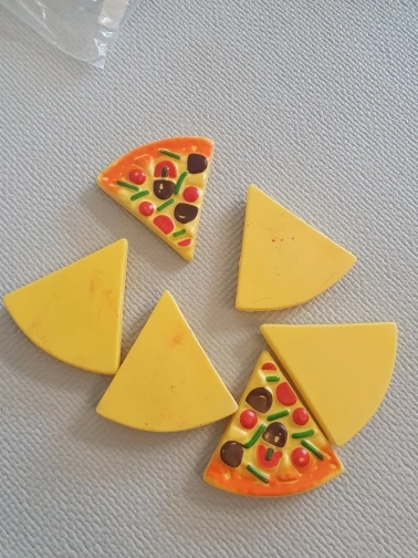 игрушка ни о чем. просто тонюсенькие кусочки пиццы, даже липучки между ними нет