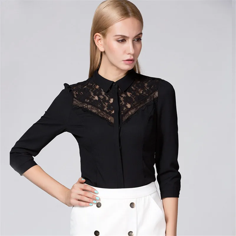 Женский облегающий костюм Ruoru, шифоновая блузка на три четверти, кружевная белая блузка, черные кружевные топы, блузки с вышивкой