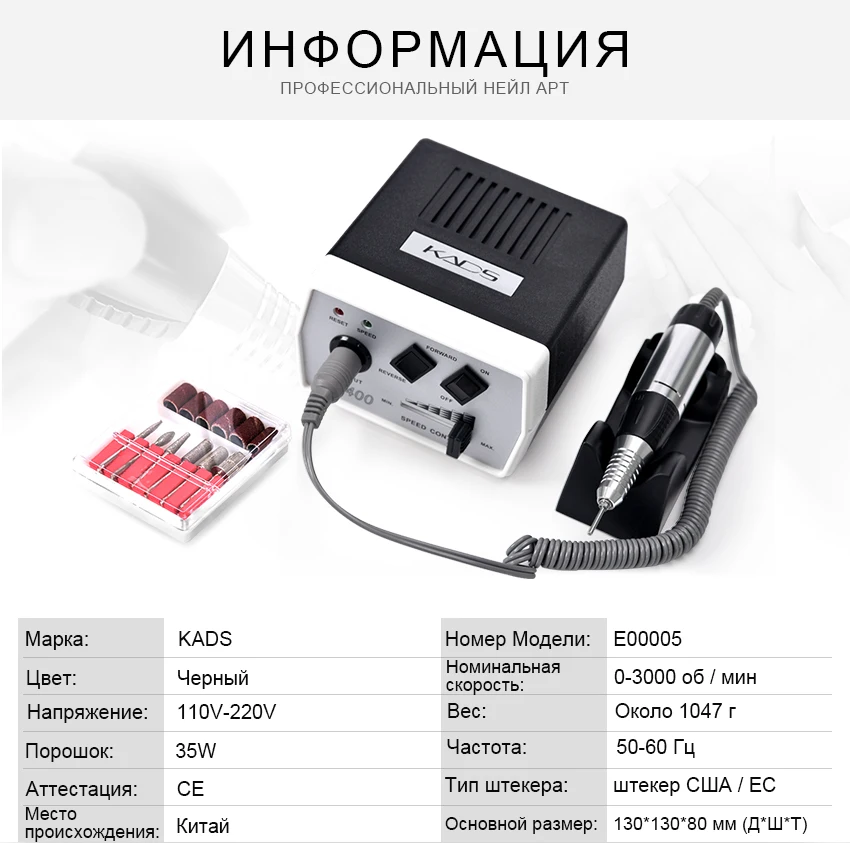 KADS аппарат для маникюра дрель для ногтей маникюрный набор 30000 обмин Электрическая дрель для ногтей Аксессуары для сверла машины контроль скорости педикюр маникюрные инструменты машинка для маникюра