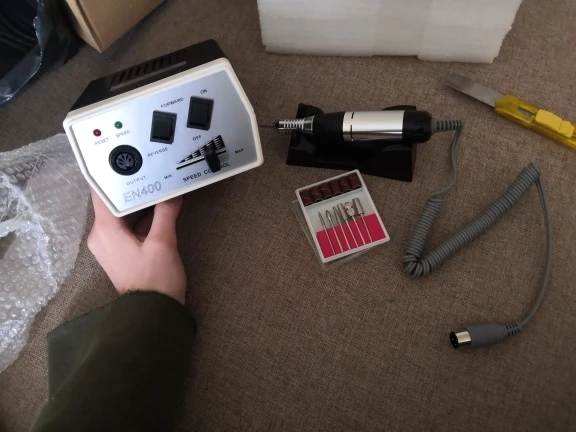Заказом довольна. Привез курьер до двери в течении недели. Конечно фрезы в комплекте не очень, но у меня уже были куплены другие. Сделала маникюр, результат порадовал. Для домашнего использования идеальный вариант.