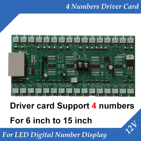 • 3, одна карта драйвера занимает максимум 4/5/6 цифр, используется для 6-дюймового до 15-дюймового светодиодного цифрового модуля