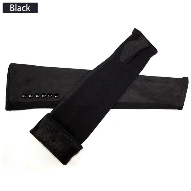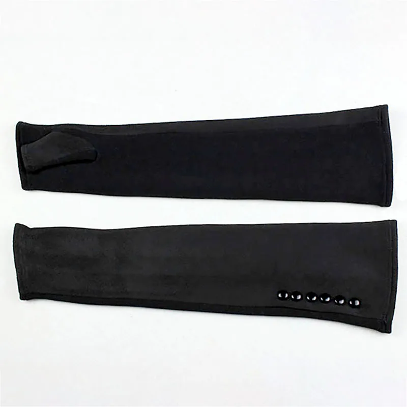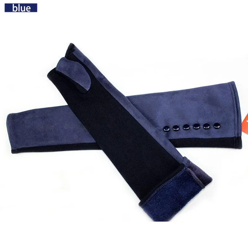 Длинные Хлопковые вязаные перчатки без пальцев длиной 42 см, женские замшевые теплые перчатки с бархатной подкладкой на пуговицах для осени и зимы