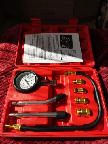 1 x тестер сжатия, 1 x шланг, 4 x резьба, 1 x прямая труба давления, 1 x угловая труба давления, 1 x Пластиковый Чехол (красный)